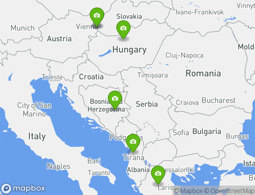 The starting point for this bus tour is located in Vienna. The exact address is Vienna, Austria. The endpoint of the tour is located at Athens, Greece. You can select the exact time slot in the booking widget.