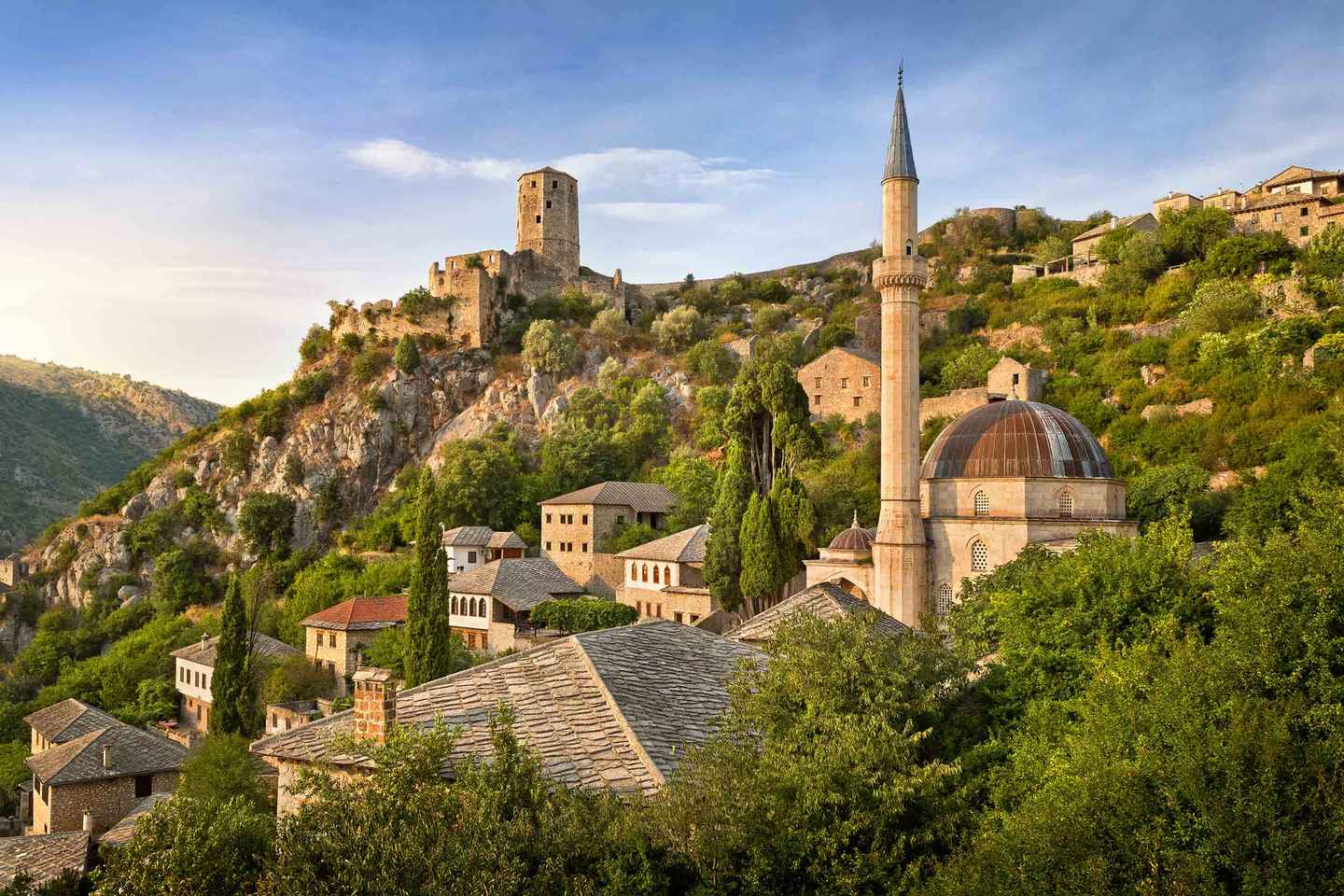 Travel onward to Blagaj, one of the oldest towns in the country. Here, explore a medieval fortress, visit the historic Dervish House from the Ottoman era, and admire the largest karst spring in Europe nestled among dramatic canyon walls.