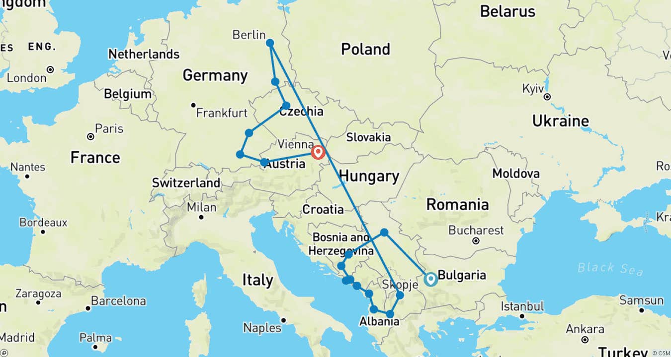 Embark on an extraordinary 17-day adventure through the heart of Europe, exploring the captivating landscapes and rich histories of the Balkans and Central Europe. This multi-day tour offers a perfect blend of cultural immersion, historical exploration, and breathtaking scenery. From the vibrant streets of Sofia to the medieval charm of Prague, each day promises new discoveries and unforgettable experiences. Traverse iconic cities like Belgrade, Sarajevo, and Dubrovnik, where history comes alive through guided tours and local insights. Delight in the architectural wonders of Vienna and Munich, and savor the unique flavors of each region. With comfortable accommodations and expertly curated itineraries, this tour ensures a seamless and enriching journey. Whether you're wandering through ancient fortresses, savoring local delicacies, or marveling at stunning landscapes, this tour offers a truly immersive experience. Join us on this remarkable journey and create memories that will last a lifetime.