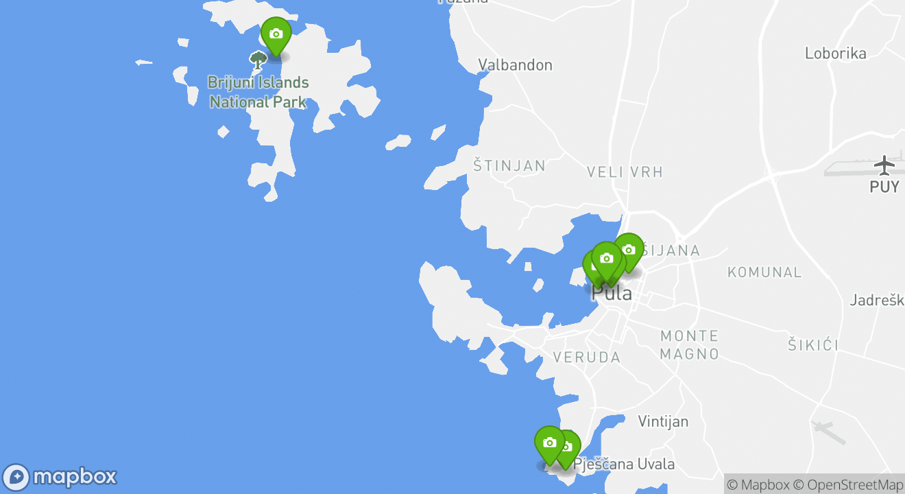 Your next adventure is waiting for you in the city of Pula. Explore the map to discover all the popular attractions you’ll visit on your unforgettable vacation in Croatia.