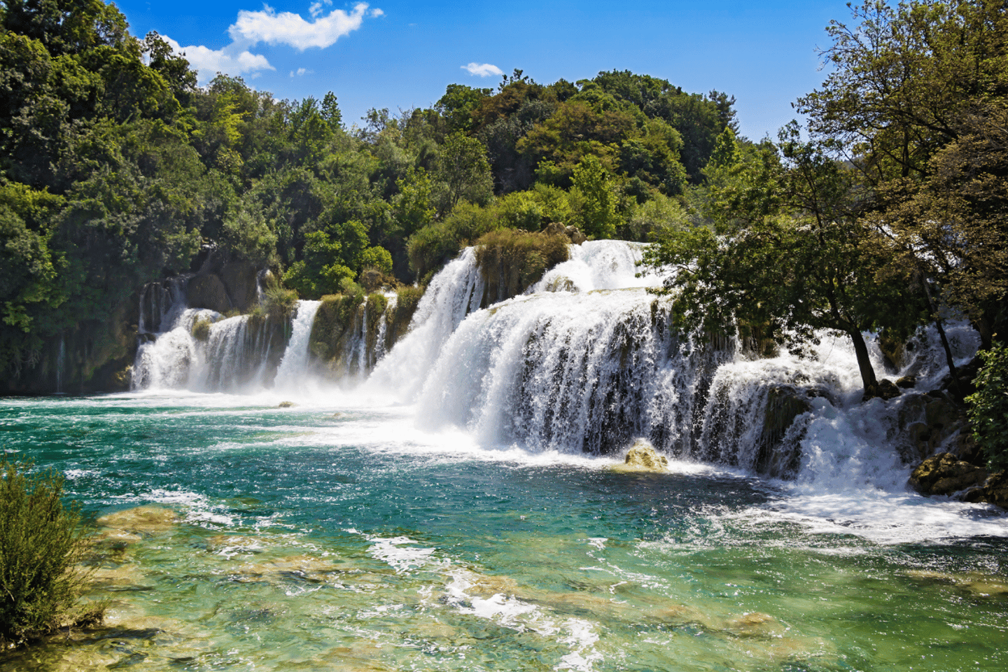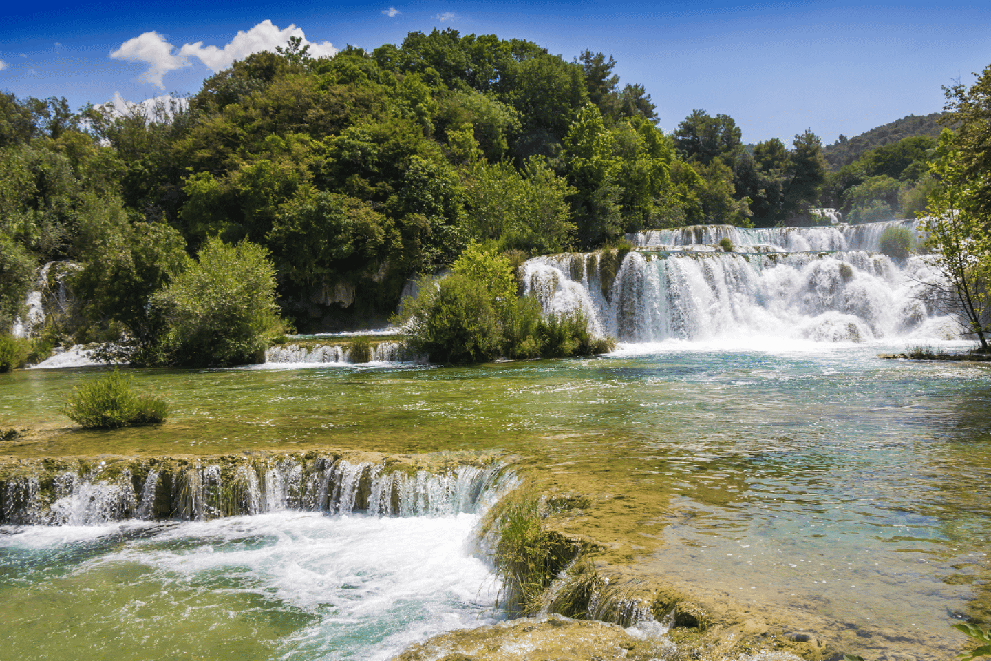Experience the natural beauty of Croatia on a guided group tour to Krka National Park, departing from Split. This immersive adventure takes you to the renowned Skradinski Buk, one of the most impressive waterfalls along the Krka River, where your licensed guide unveils the secrets of the park’s stunning landscapes and historic water mills.