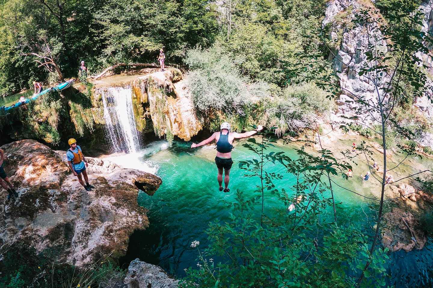 Paddle through a stunning five-kilometer stretch of turquoise water, surrounded by untouched nature. Along the way, discover magical spots for swimming and relaxation, and marvel at the river’s many waterfalls and natural pools, including the impressive Milkovića slap waterfall.