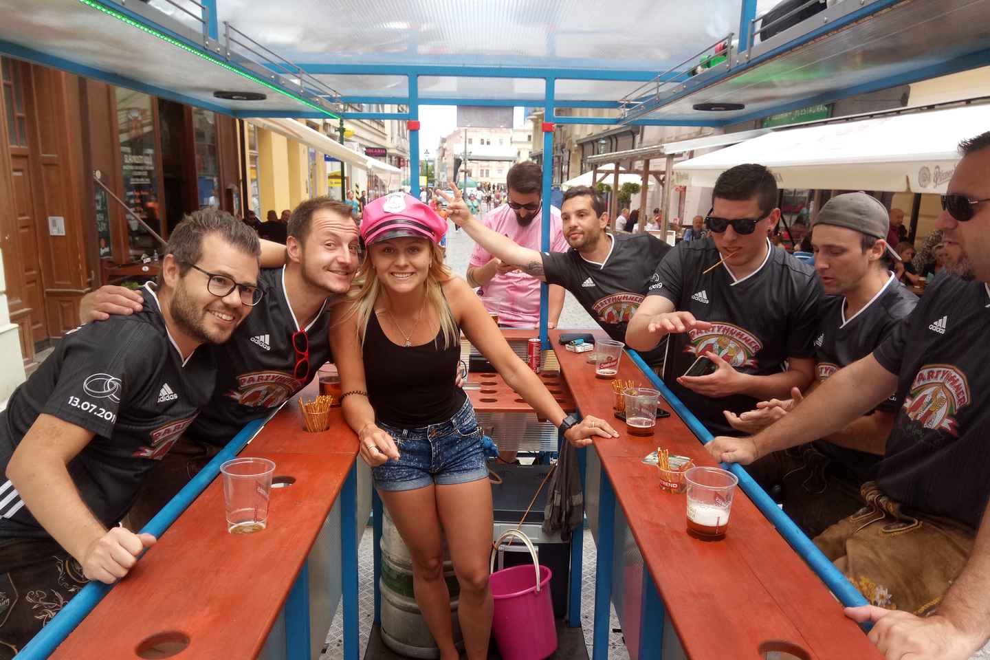 Before setting off, you'll receive a brief instruction on how to operate the beer bike, ensuring a safe and enjoyable ride. The tour is enhanced by a sound system, letting you play your favorite music as you cruise through Pilsen's city center.