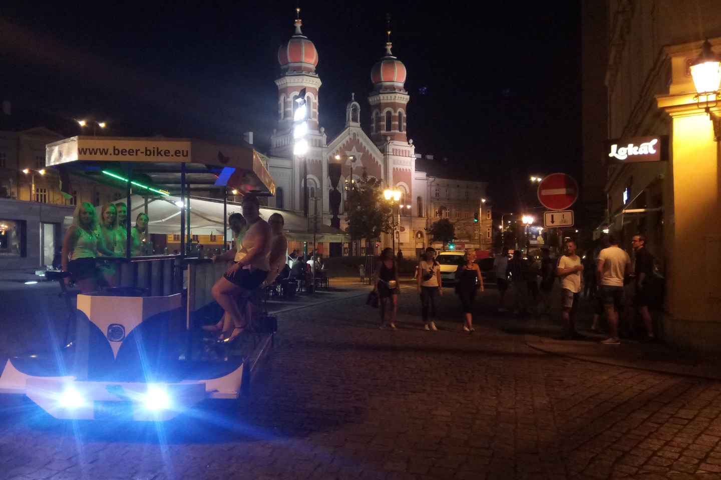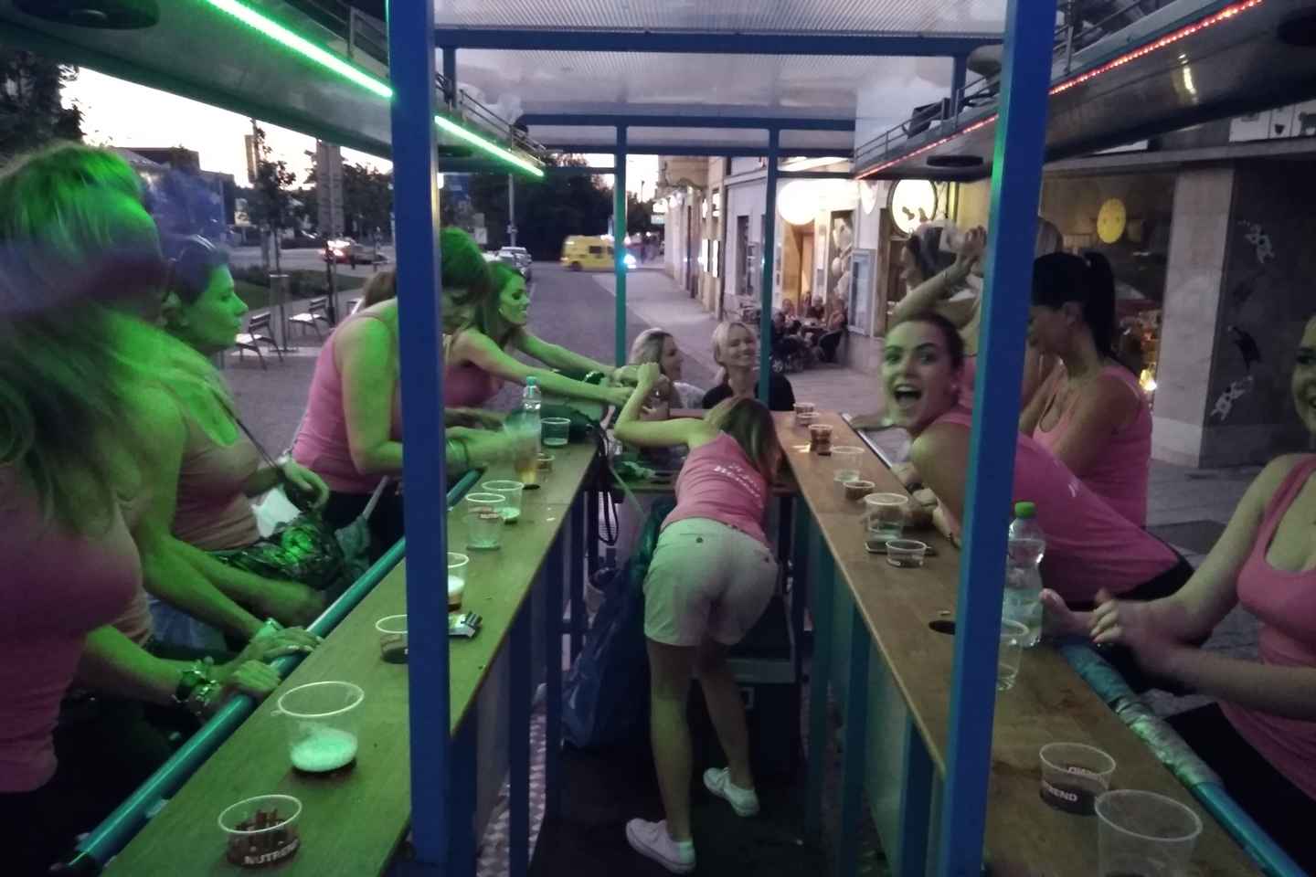 As evening falls, the bike lights up with colorful party lights, creating a festive atmosphere as you explore the city. Throughout the experience, enjoy unlimited Pilsner premium draft beer or opt for a non-alcoholic alternative if you prefer.