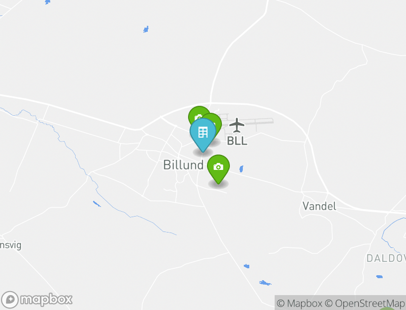 Der nächstgelegene Flughafen ist Flughafen Billund. Dieser liegt 1.7 km von deiner Unterkunft entfernt.