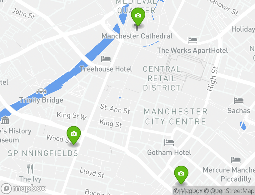 John Rylands Library, Manchester Cathedral, and Manchester Art Gallery sind einige der beliebtesten Sehenswürdigkeiten, an denen du unterwegs vorbeikommen wirst. Während deiner Reise hast du die einmalige Gelegenheit, einen Blick auf alle diese beliebten Attraktionen zu werfen.