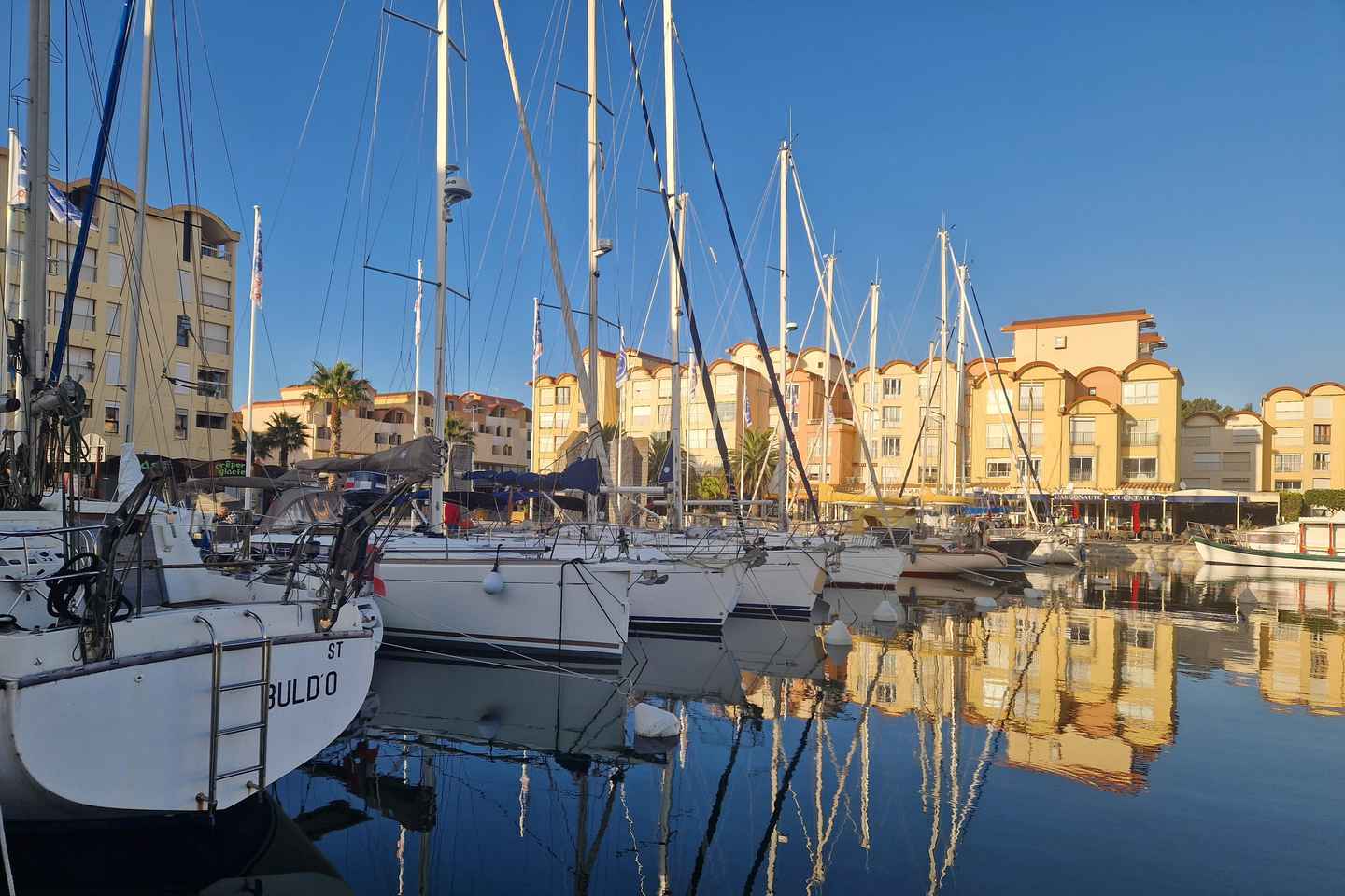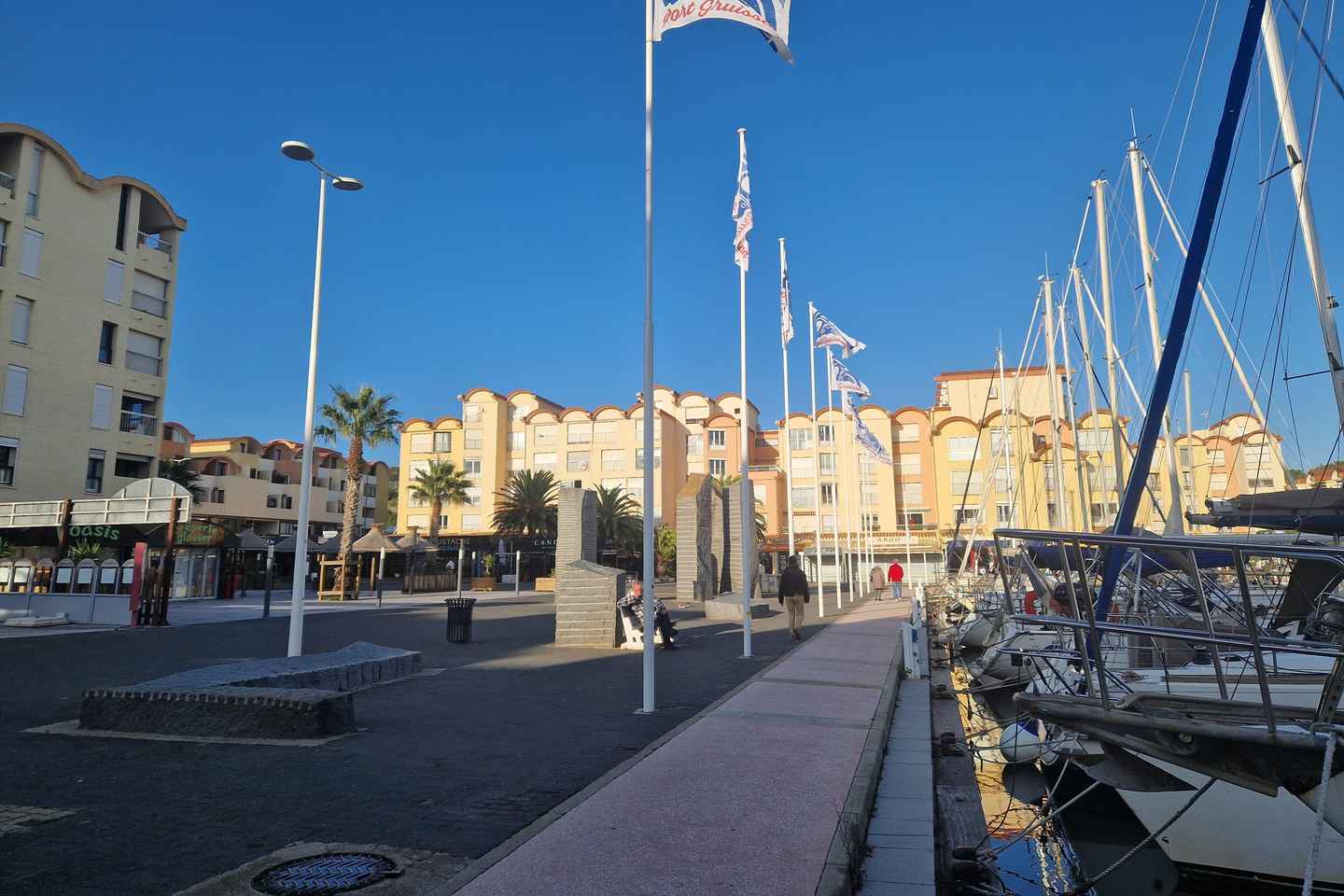 Beginnen Sie Ihr unvergessliches Abenteuer in Gruissan mit einem Spaziergang entlang der lebhaften Promenade des Palmiers! Hier werden Sie von der Capitainerie de Gruissan verzaubert, die die eleganten Yachten im Hauptbecken verwaltet. Schlendern Sie in Richtung Place des Menhirs und lassen Sie sich von der einzigartigen Architektur begeistern, die das geschäftige Hafengebiet prägt.