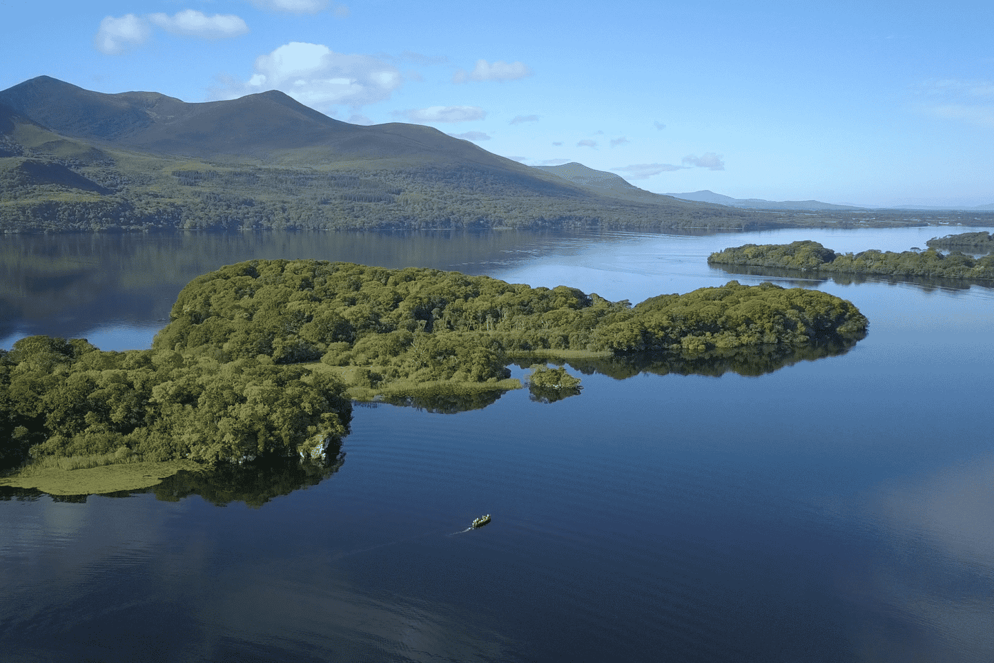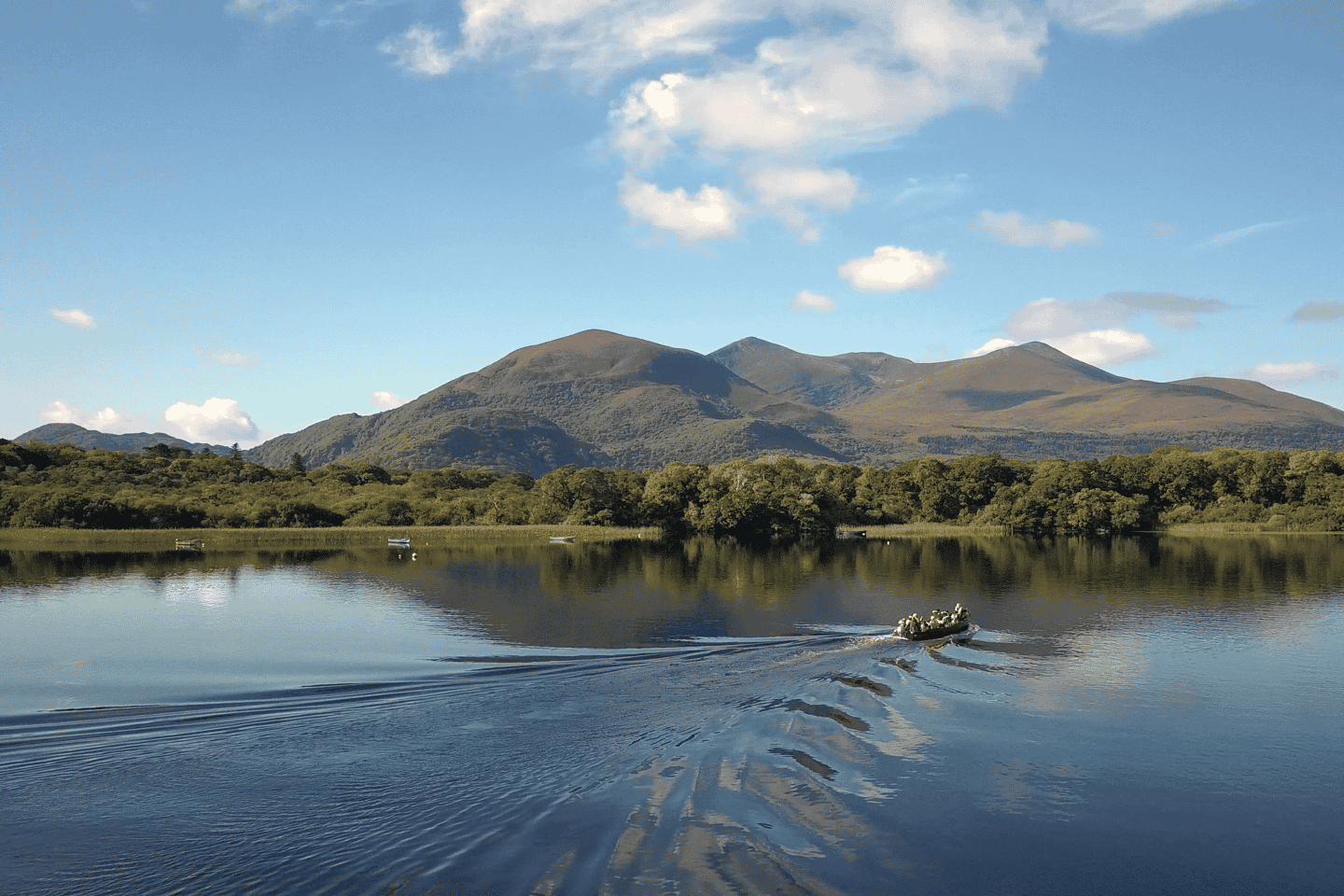 Setze deine Reise mit einer traditionellen Bootsfahrt über die Seen von Killarney fort. Dein Guide wird dir faszinierende historische Einblicke geben, während du an Sehenswürdigkeiten wie dem Purple Mountain, Dinish Island und Ross Castle vorbeiziehst.
