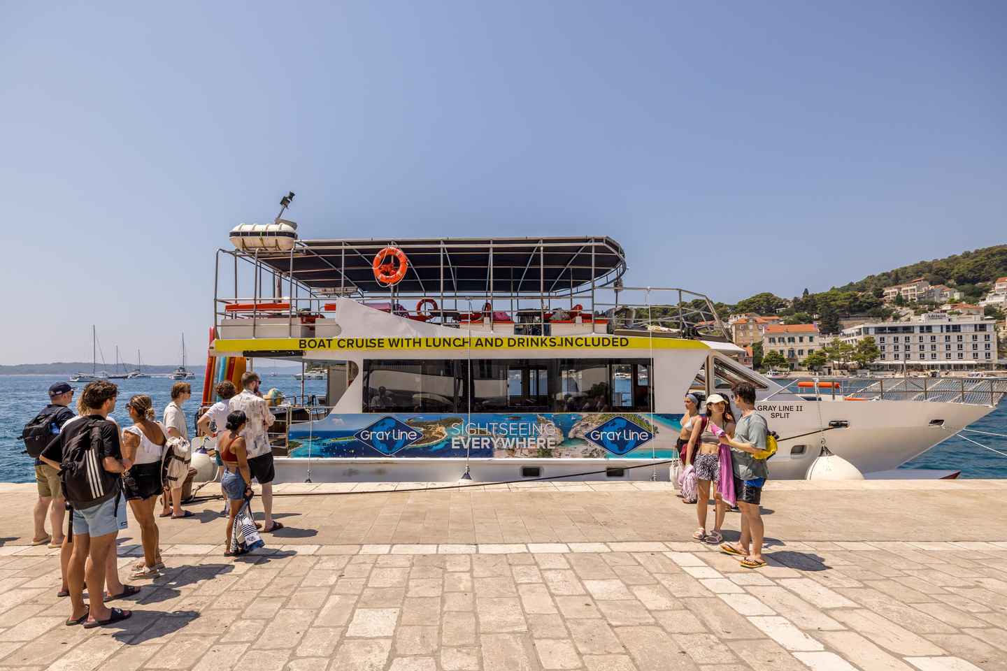 Beenden Sie Ihre Kreuzfahrt mit einem friedlichen Stopp in der Nähe der Insel Brač. Genießen Sie ein erfrischendes Bad in einer abgelegenen Bucht und genießen Sie ein Mittagessen mit vielfältigen Menüoptionen und erfrischenden Getränken – alles in Ihrem Abenteuer inbegriffen.