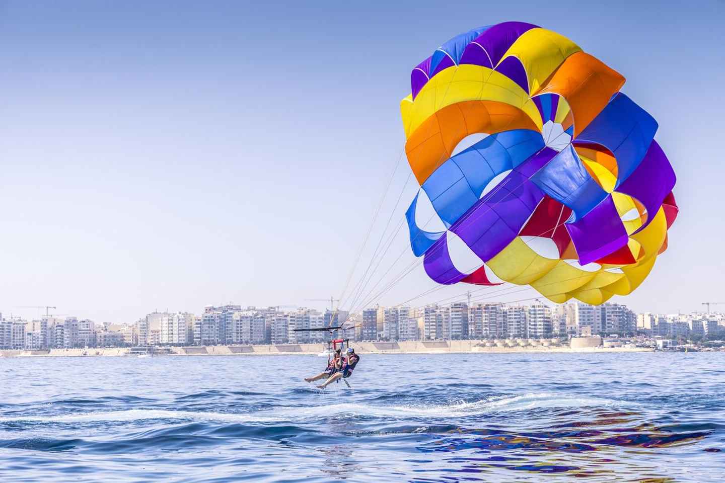 Mach dich bereit für ein aufregendes Parasailing-Abenteuer in St. Julian's, Malta! Genieße die atemberaubende Aussicht und erlebe die Aufregung, während du hoch über der St. George's Bay schwebst. Beginne deine Reise im örtlichen Geschäft und rase dann mit einem Schnellboot über die Bucht, um den Grundstein für ein unvergessliches Erlebnis zu legen.