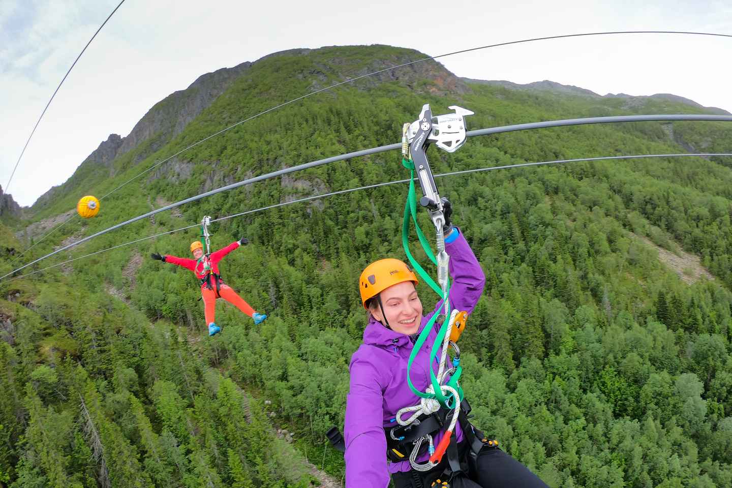 Begeben Sie sich auf ein aufregendes Zipline-Abenteuer über Mosjøen! Spüren Sie die Aufregung, während Sie 70 Meter über Storfjellet gleiten und den Panoramablick auf die historische Sjøgata-Straße und die atemberaubende Landschaft um sich herum genießen.