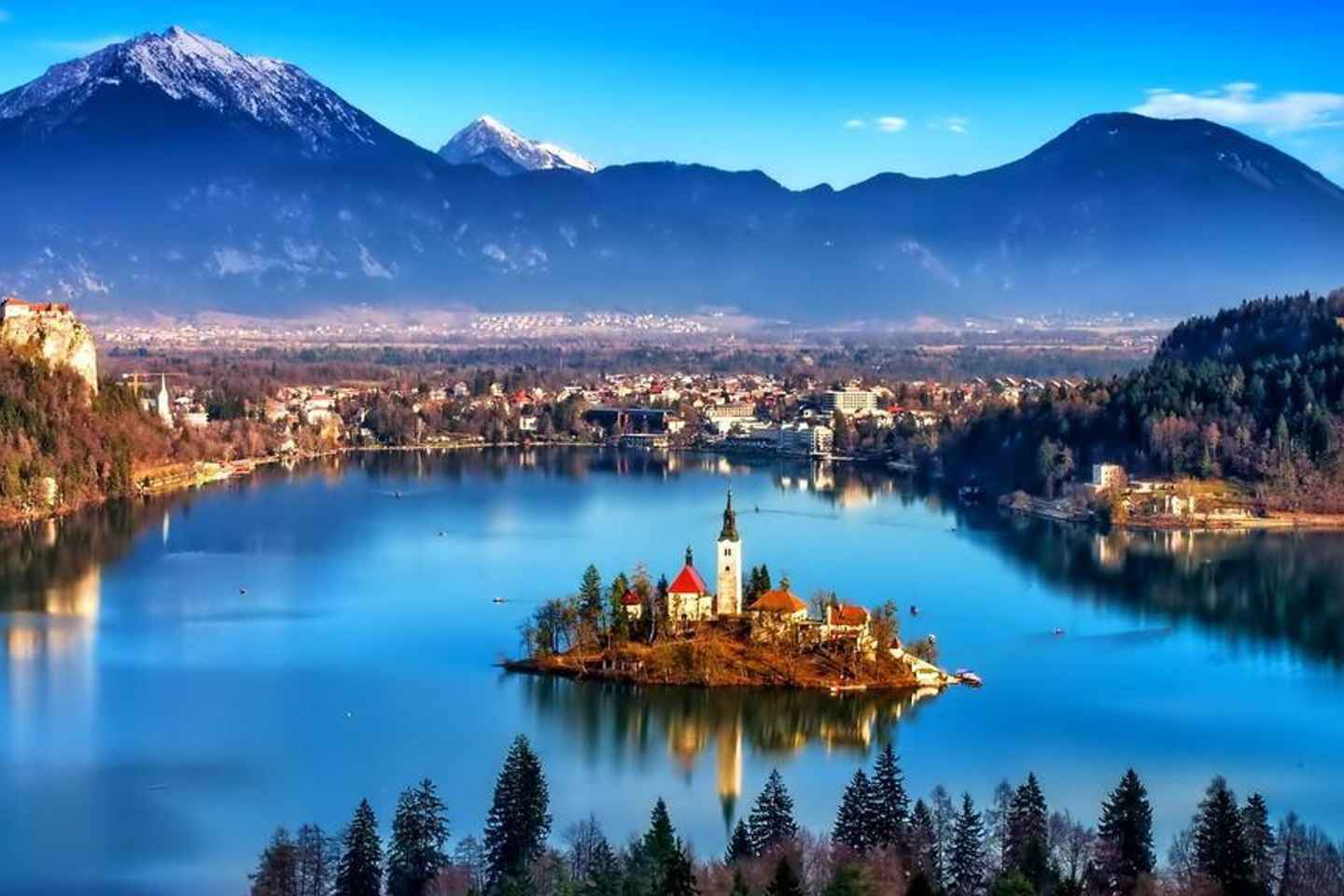 Spazieren Sie entlang des Seeufers und erleben Sie die friedliche Atmosphäre und die frische Bergluft. Besuchen Sie das ikonische Bleder Schloss, das auf einem 100 Meter hohen Felsen thront und atemberaubende Ausblicke sowie eine einzigartige Druckvorführung mit Gutenbergs Holzpresse bietet.
