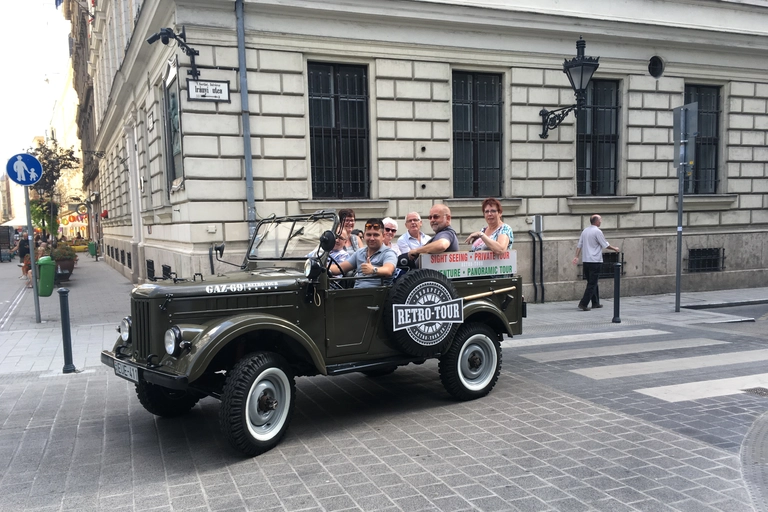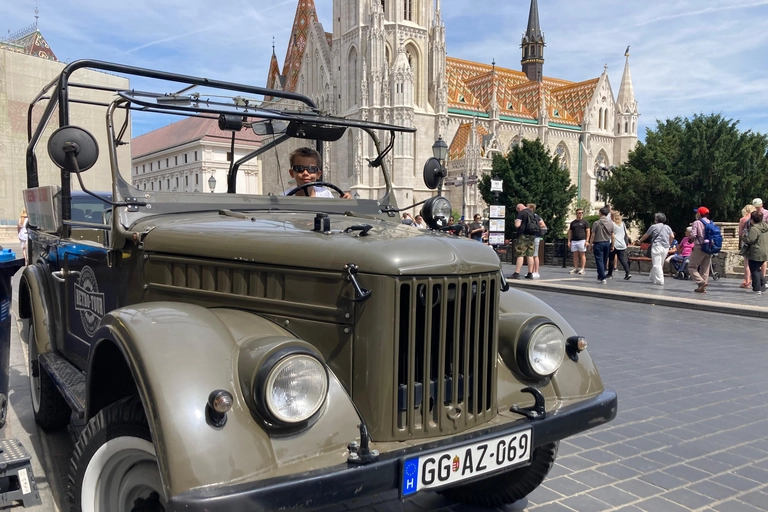 Erleben Sie Budapest auf einzigartige Weise mit einer privaten Stadtrundfahrt in einem Vintage-Russischen Militärjeep! Entfliehen Sie den Menschenmassen traditioneller Bustouren und erkunden Sie versteckte Juwelen und ikonische Sehenswürdigkeiten in Ihrem eigenen Tempo.