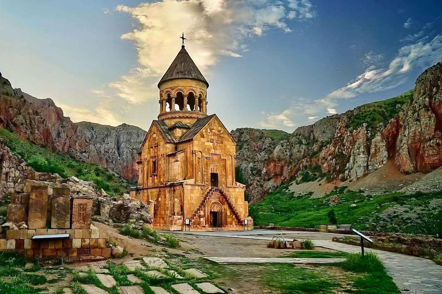 Continúa hacia el intrigante Monumento del Alfabeto Armenio, que celebra las 39 letras únicas y conmemora a los grandes pensadores de la nación. Hecho de piedra toba nativa, este sitio es un testimonio del legado lingüístico y cultural de Armenia.