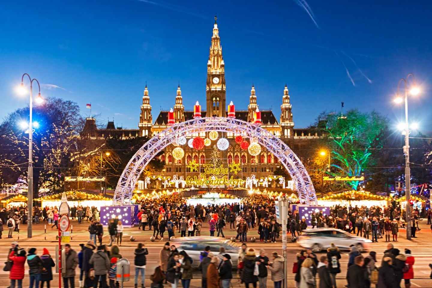 A continuación, explora la grandeza del Rathaus, que alberga el Wiener Christkindlmarkt. Las luces festivas y el ambiente alegre proporcionan un telón de fondo mágico a tu exploración. Continúa hacia Maria-Theresien-Platz, donde te espera otro mercado encantador, ofreciendo delicias locales y un espíritu festivo alegre.