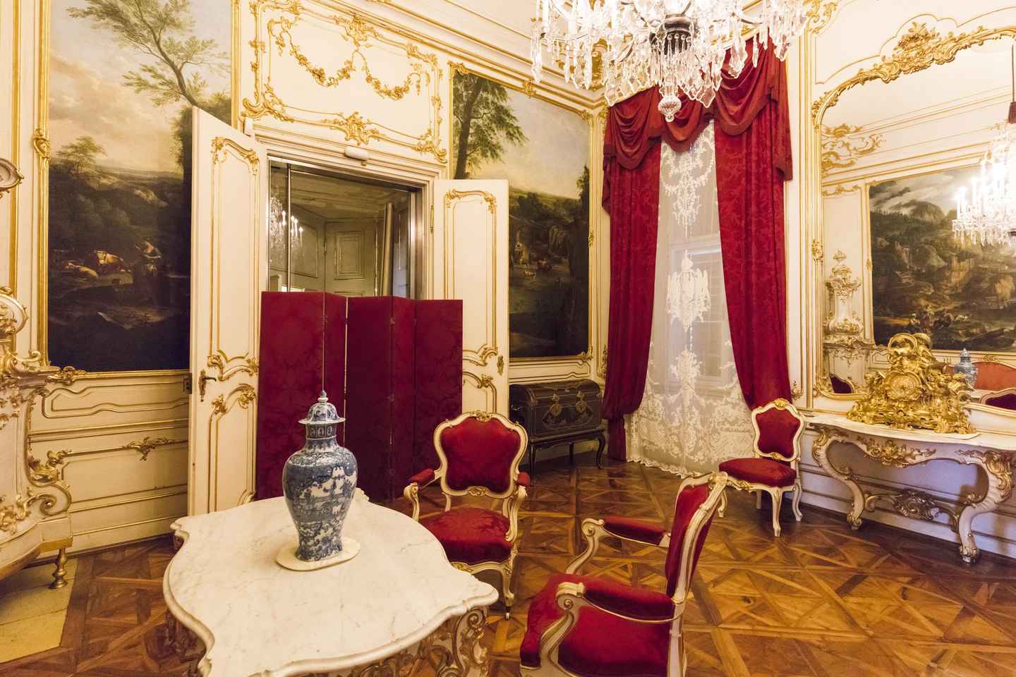Descubre el intrincado arte, arquitectura y mobiliario del palacio con tu guía conocedor. Aprende sobre las fascinantes vidas de la emperatriz María Teresa y Sisi mientras te mueves por los fastuosos pasillos.
