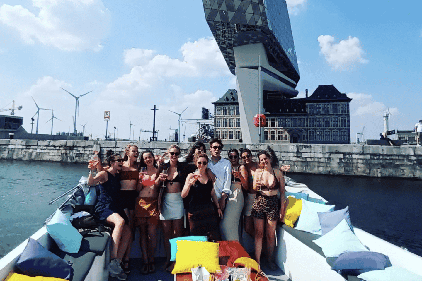 Deslízate sin esfuerzo en nuestro barco eléctrico ecológico mientras pasas por los emblemáticos hitos de Amberes. Disfruta de Cava premium, cervezas refrescantes y diversas bebidas frías, todo incluido, mientras te empapas de las vibrantes vistas de la ciudad.