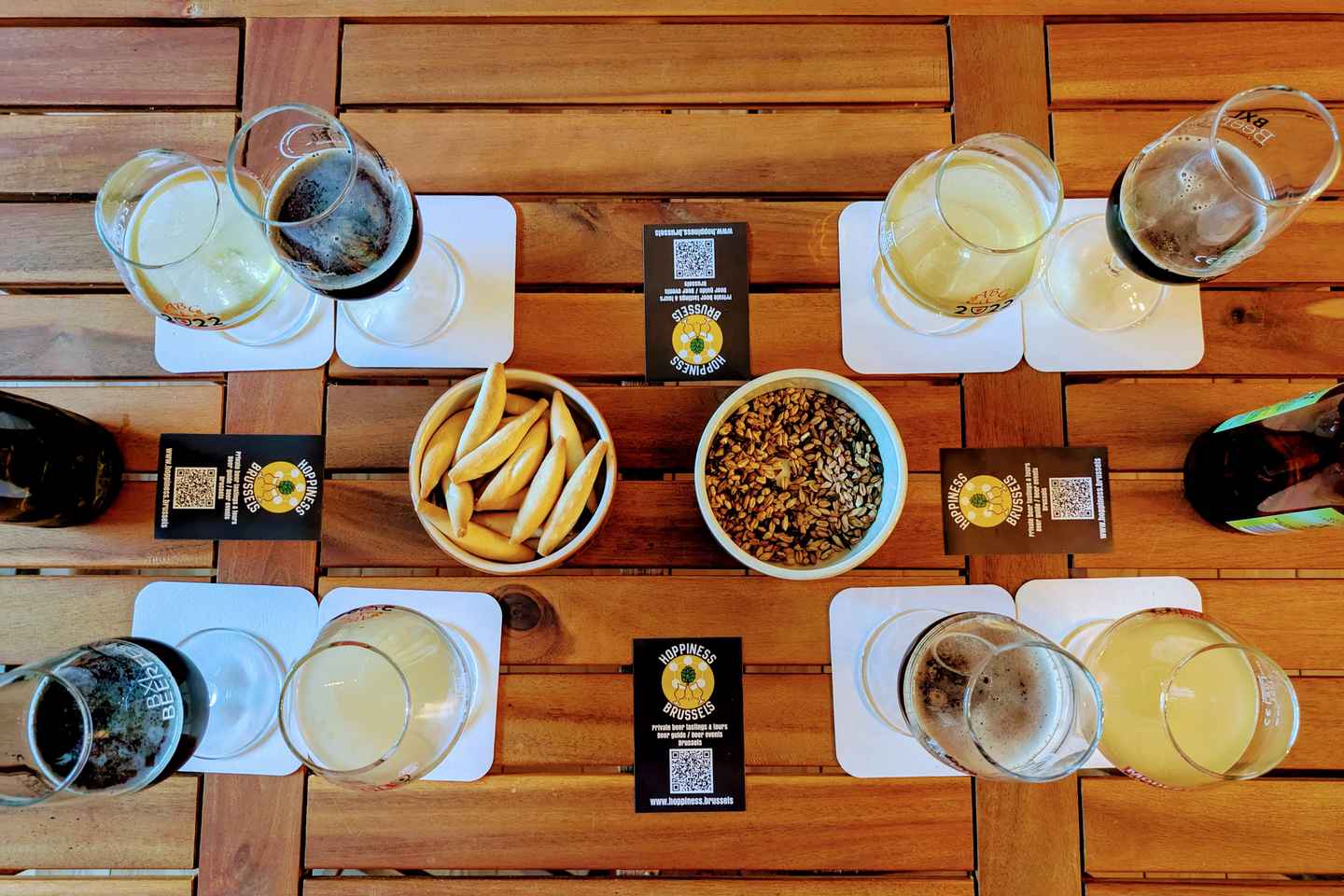 ¡Descubre el vibrante mundo de las cervezas artesanales belgas en Bruselas con un sumiller de cerveza local! Únete a Carien en su sala de cata privada mientras te guía a través de los ricos sabores y los diversos estilos de las cervezas belgas. Desde cervezas aromáticas hasta stouts robustas, disfruta de cuatro cervezas únicas, cada una acompañada de deliciosos aperitivos.