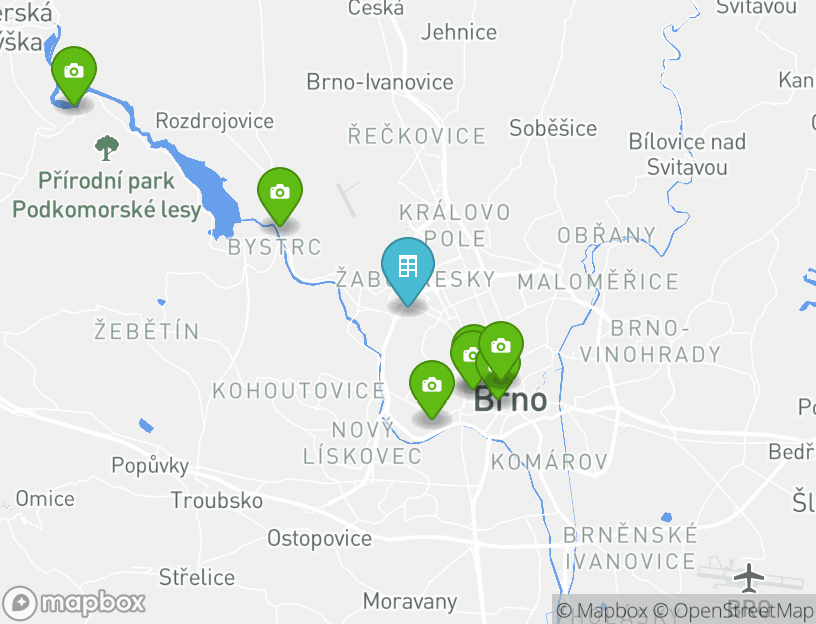 El aeropuerto más cercano es Aeropuerto de Brno-Tuřany, que se encuentra a 10.9 km de tu alojamiento.