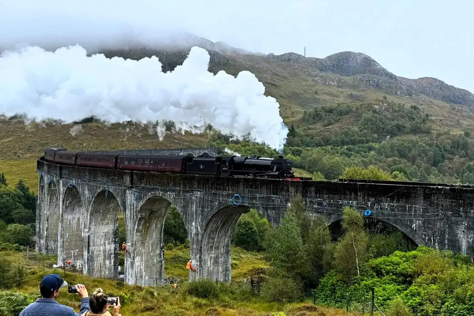 Presencia el famoso Tren de Vapor Jacobita cruzando el viaducto, una visita obligada para los fanáticos de "Harry Potter". El encantador telón de fondo de Loch Shiel mejora la experiencia mágica, ofreciendo un vistazo del "Lago Negro" de la serie.