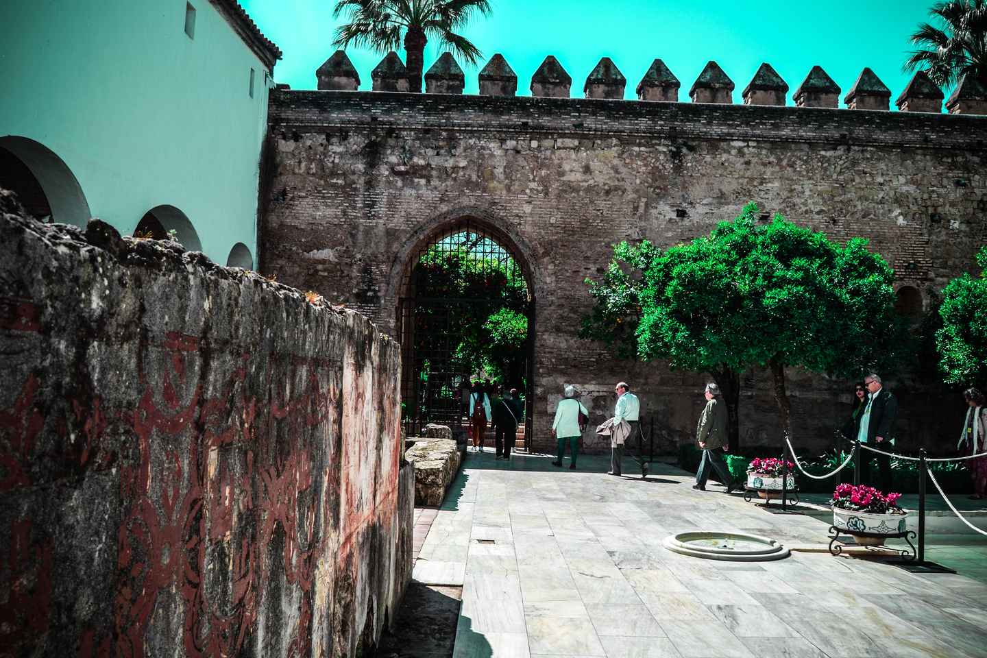 Pasea por el "Patio de las Mujeres", un sitio significativo que una vez sirvió como prisión para mujeres. Concluye tu exploración en los jardines exuberantes del Alcázar, donde las vibrantes flores y fuentes serenas ofrecen un retiro encantador para todos los visitantes.