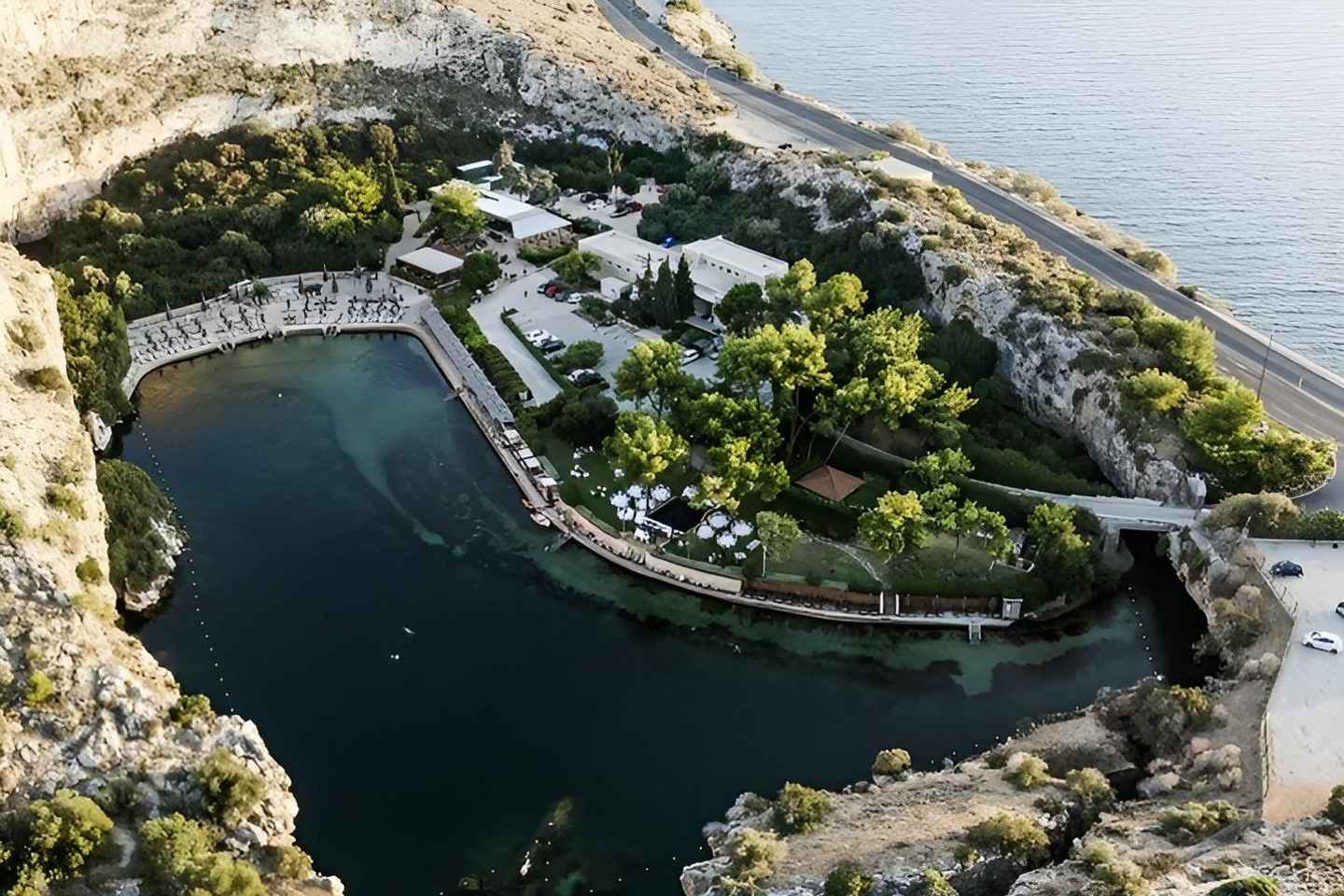 Comienza tu aventura con un pintoresco paseo en coche por el Lago Vouliagmeni, un oasis tranquilo rodeado de vegetación. Mientras viajas, admira las aguas azul profundo del Egeo, que proporcionan un telón de fondo pintoresco a tu viaje.