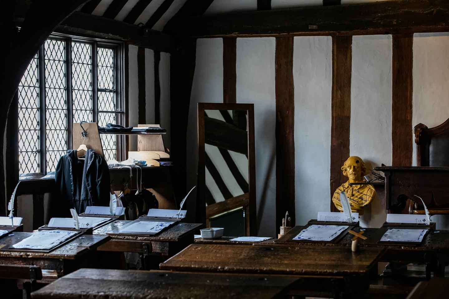 Descubre las materias y métodos que influyeron en el genio de Shakespeare mientras te sientas en la misma sala donde él una vez estudió. Explora el notable Guildhall, que cuenta con una capilla de sacerdote medieval tardío y pinturas murales conservadas.