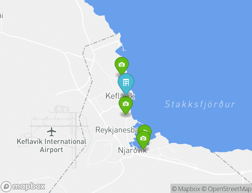 El aeropuerto más cercano es Aeropuerto Internacional de Keflavík, que se encuentra a 3.2 km de tu alojamiento.