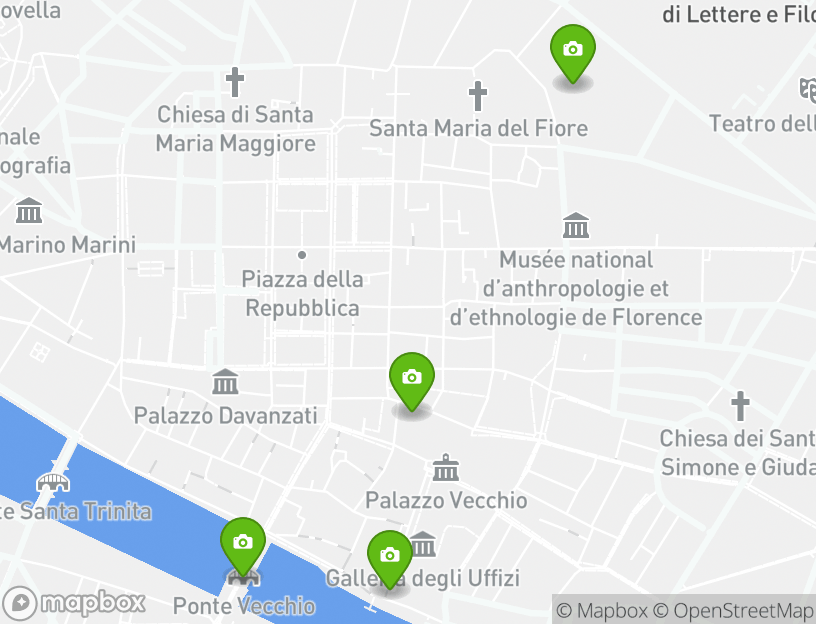El punto de partida de esta actividad es Santa Maria Novella. Durante tu aventura, verás algunas de las principales atracciones locales. Algunas de las atracciones más destacadas de este itinerario son Florence Duomo (Cattedrale di Santa Maria dei Fiori), Uffizi Galleries (Gallerie degli Uffizi), Michelangelo's Statue of David (Il Davide di Michelangelo), Piazza della Signoria, and Ponte Vecchio. Cerca de allí, Florencia ofrece algunos de los mejores destinos turísticos locales.