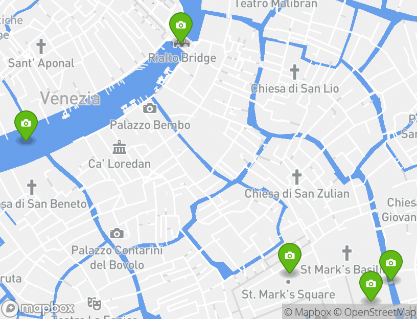 El punto de partida de esta actividad es St. Mark's Square. Durante tu aventura, verás algunas de las principales atracciones locales. Algunas de las atracciones más destacadas de este itinerario son Grand Canal, Frari Church (Basilica dei Frari), Rialto Fish Market (Mercato di Rialto), Rialto Bridge (Ponte di Rialto), and St. Mark's Square (Piazza San Marco). Cerca de allí, Venecia ofrece algunos de los mejores destinos turísticos locales. Doge's Palace (Palazzo Ducale) and Bridge of Sighs son algunos de los sitios favoritos que no querrás perderte.