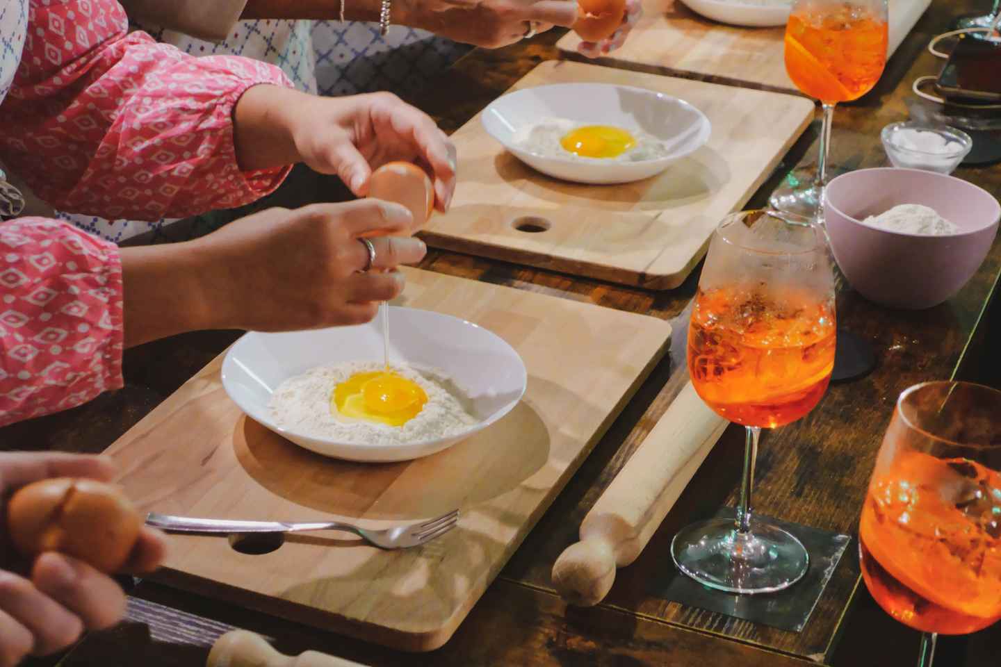 Comienza tu aventura con un Aperol spritz y conecta con otros participantes y un chef local experto. Explorarás el arte de hacer tres spritz tradicionales y elaborar pasta fresca desde cero. Descubre cómo preparar la salsa carbonara o cacio e pepe perfecta utilizando ingredientes locales frescos.