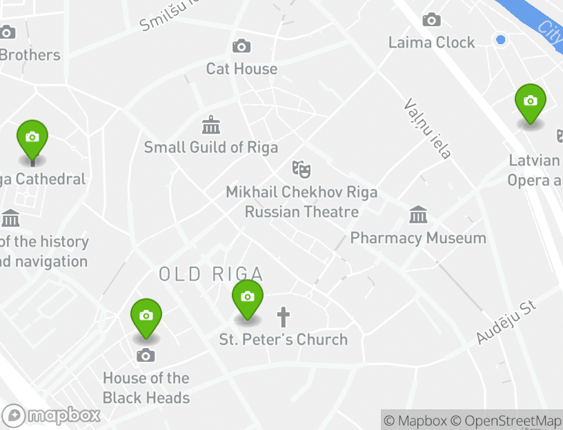 House of the Blackheads (Melngalvju Nams), Riga Town Hall Square (Ratslaukums), Riga Old Town (Vecriga), Riga Cathedral (Rigas Doms), and St Peter's Church son algunos de los lugares de interés más populares por los que pasarás, lo que te brinda una oportunidad única de disfrutar de dar un vistazo a estas atracciones favoritas mientras viajas.