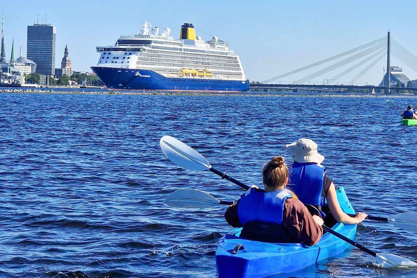 Mientras navegas, admira las impresionantes vistas del Casco Antiguo de Riga con sus torres históricas, el Palacio Presidencial y la maravilla arquitectónica de la Biblioteca Nacional. Cada vista ofrece una instantánea de la rica herencia cultural de Riga.