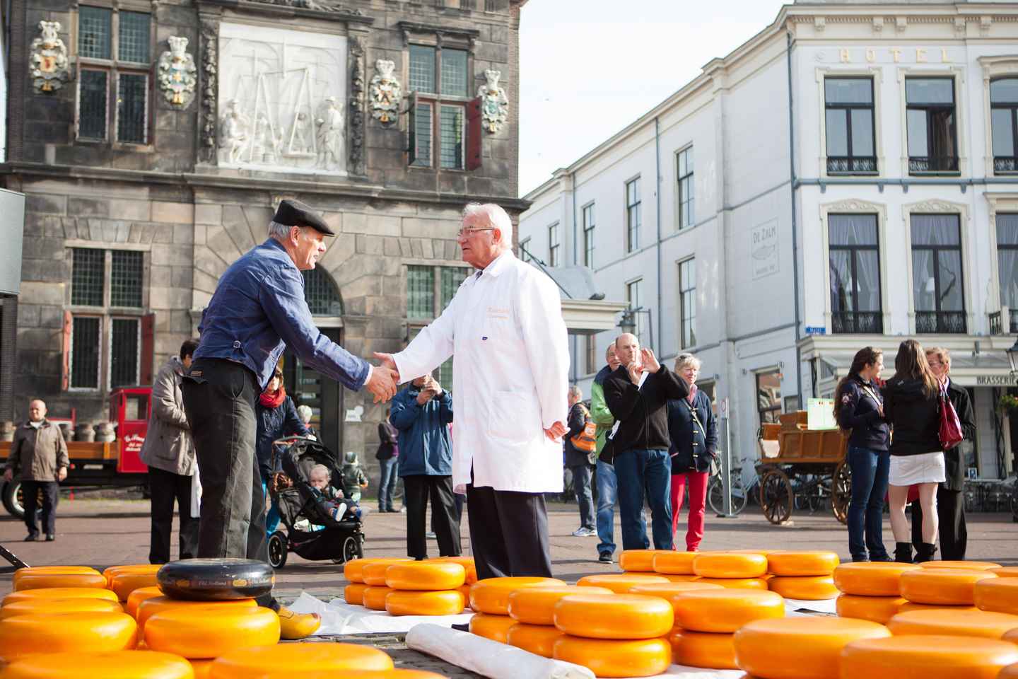 Llega a las icónicas chicas del queso mostrando su experiencia mientras pruebas una variedad de quesos exquisitos. Explora los puestos del mercado llenos de delicias locales y productos artesanales, sumergiéndote en la cultura holandesa.