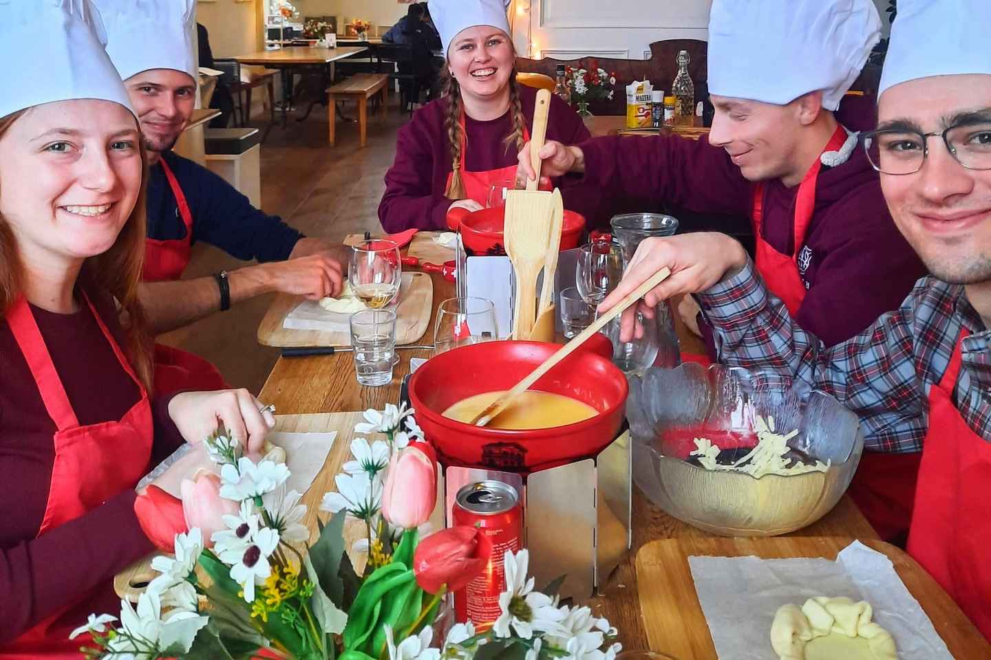 ¡Descubre los secretos del plato favorito de Suiza en esta clase de cocina de fondue interactiva! Sumérgete en el arte de crear una fondue de queso cremosa y sabrosa utilizando quesos alpinos locales mientras exploras la rica historia y cultura asociada con el queso suizo. Este taller práctico es una actividad grupal ideal para aquellos deseosos de experimentar tradiciones culinarias suizas auténticas.