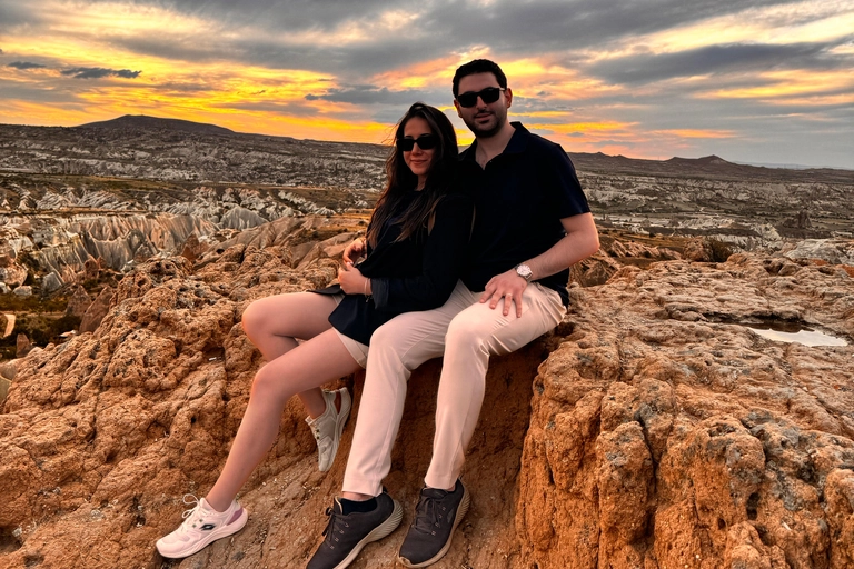 Descubre la belleza encantadora de Capadocia con un romántico tour al atardecer en el Valle Rojo. Conocido por sus impresionantes paisajes y vibrantes colores, este tour promete momentos inolvidables contra un telón de fondo impresionante.