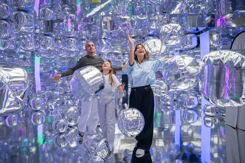 Chez IKONO, vous pouvez créer de l'art en dessinant avec la lumière, vous immerger dans l'ambiance nostalgique d'une salle d'arcade des années 80, ou trouver la sérénité dans un sanctuaire de lanternes apaisant. L'aventure inclut une salle pleine de reflets infinis et de 99 ballons argentés, ainsi qu'une aire de jeux avec piscine à balles adaptée aux adultes.
