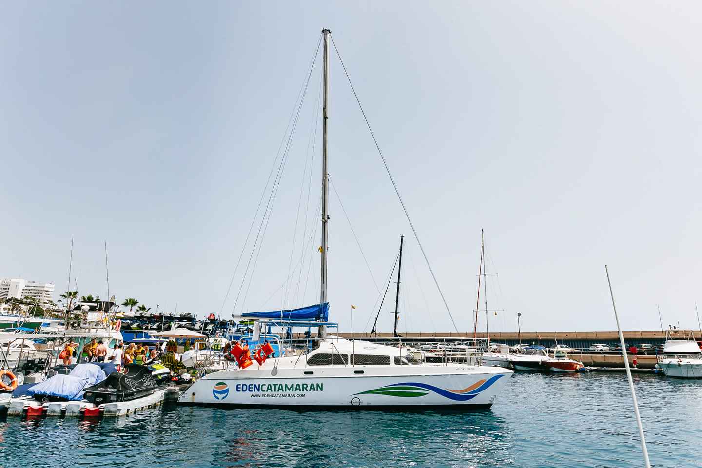 Partez pour une aventure inoubliable au large des côtes de Costa Adeje à Tenerife, à la recherche de baleines et de dauphins ! Cette excursion de deux heures en catamaran vous offre une occasion unique d'observer la vie marine dynamique qui fait de cette région un incontournable pour les amoureux de la nature. Au départ de Puerto Colon, vous vous aventurerez à quelques kilomètres au large, là où les globicéphales sont souvent aperçus.