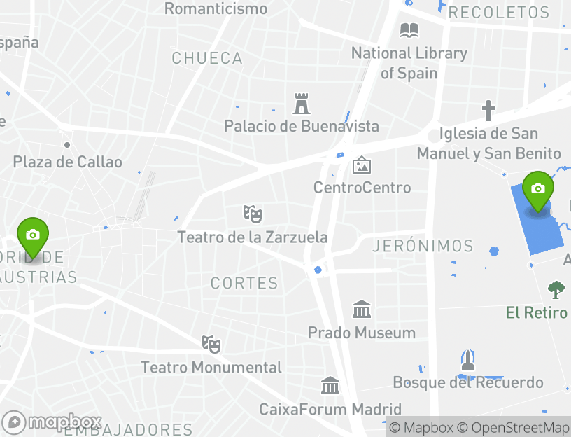 Le point de départ de cette activité est C. De l'Escalinata, 10. Au cours de votre aventure, vous verrez certains des sites d’intérêt majeurs. Certains des points forts inclus dans cet itinéraire sont Retiro Park (Parque d'El Retiro), Puerta del Sol, and Plaza Mayor. À proximité, Madrid propose certaines des plus belles destinations touristiques locales.