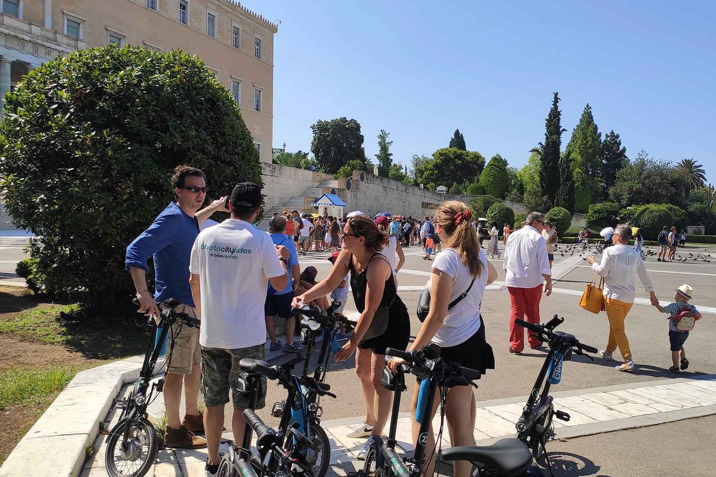 Pédalez dans le quartier chic d'Athènes, réputé pour ses rues luxueuses, et arrivez à la place Syntagma juste à temps pour l'emblématique relève de la garde. Continuez vers le Zappeion et le stade historique de Panathinaïkos, en vous imprégnant de l'histoire et de la culture riches de la ville.