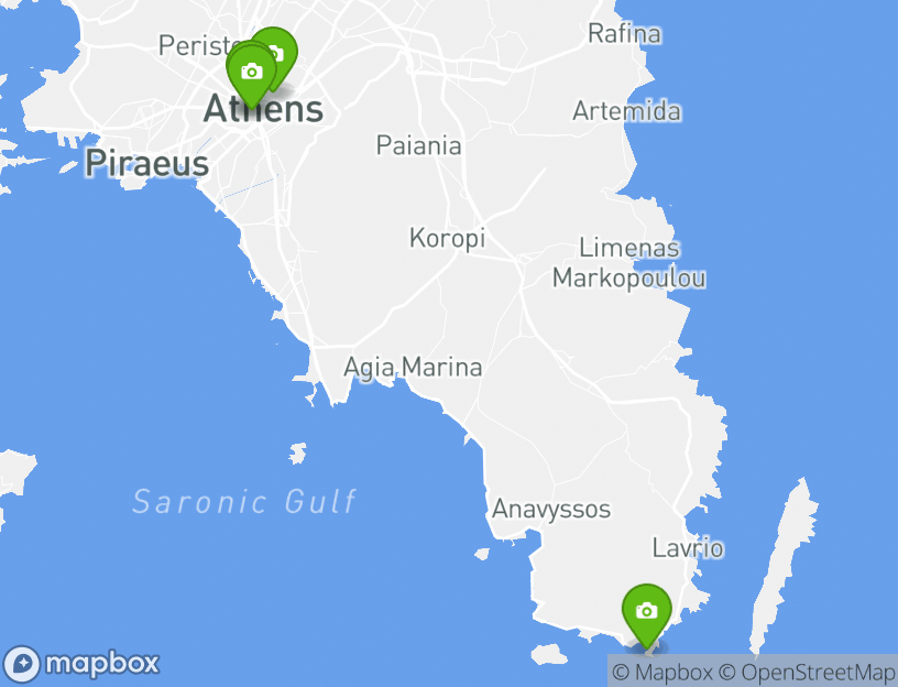 Le point de départ de cette activité est Athens International Airport "Eleftherios Venizelos". Au cours de votre aventure, vous verrez certains des sites d’intérêt majeurs. À proximité, Athènes propose certaines des plus belles destinations touristiques locales. Temple of Poseidon sont quelques favoris que vous ne voudrez pas manquer.