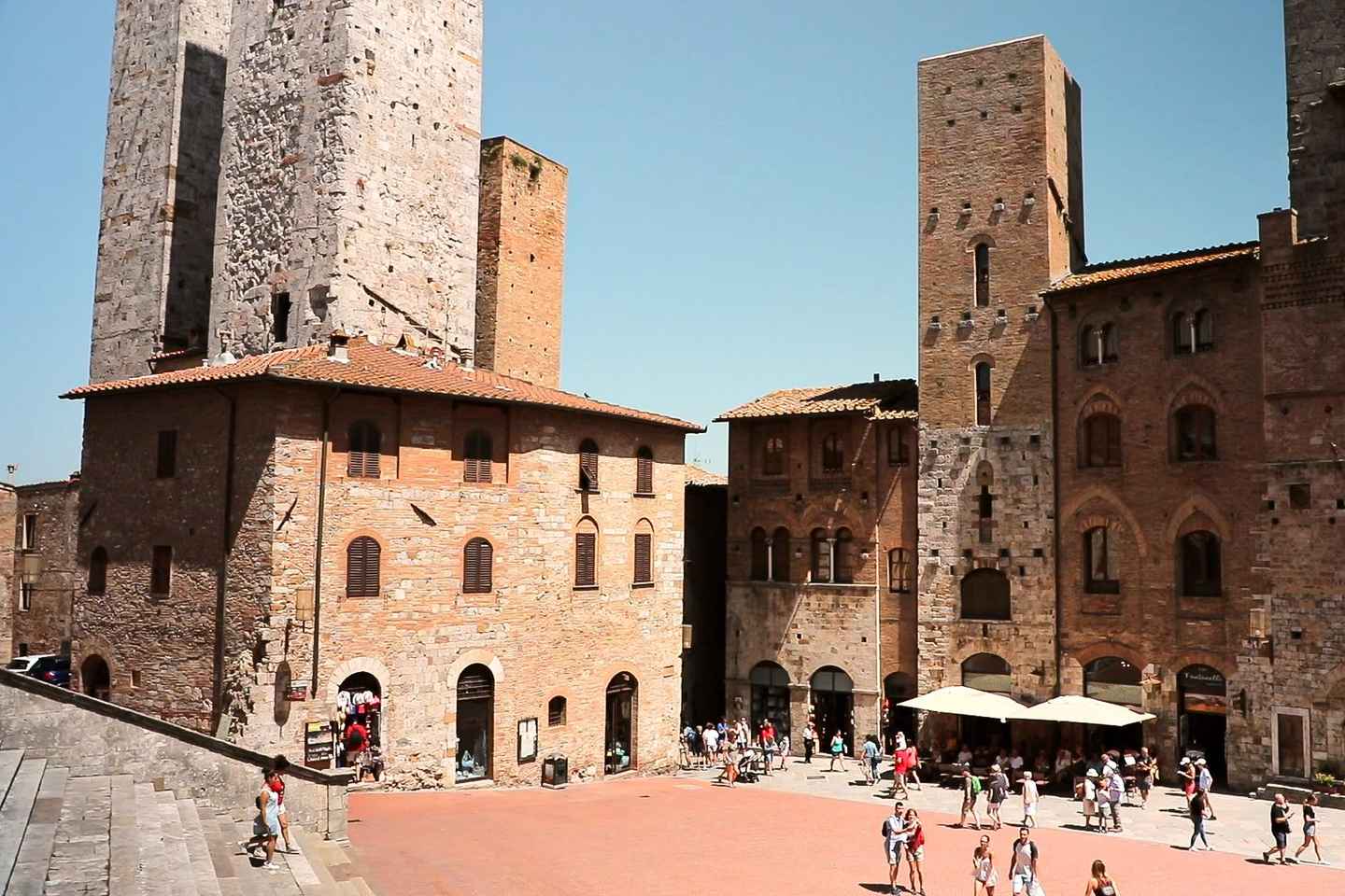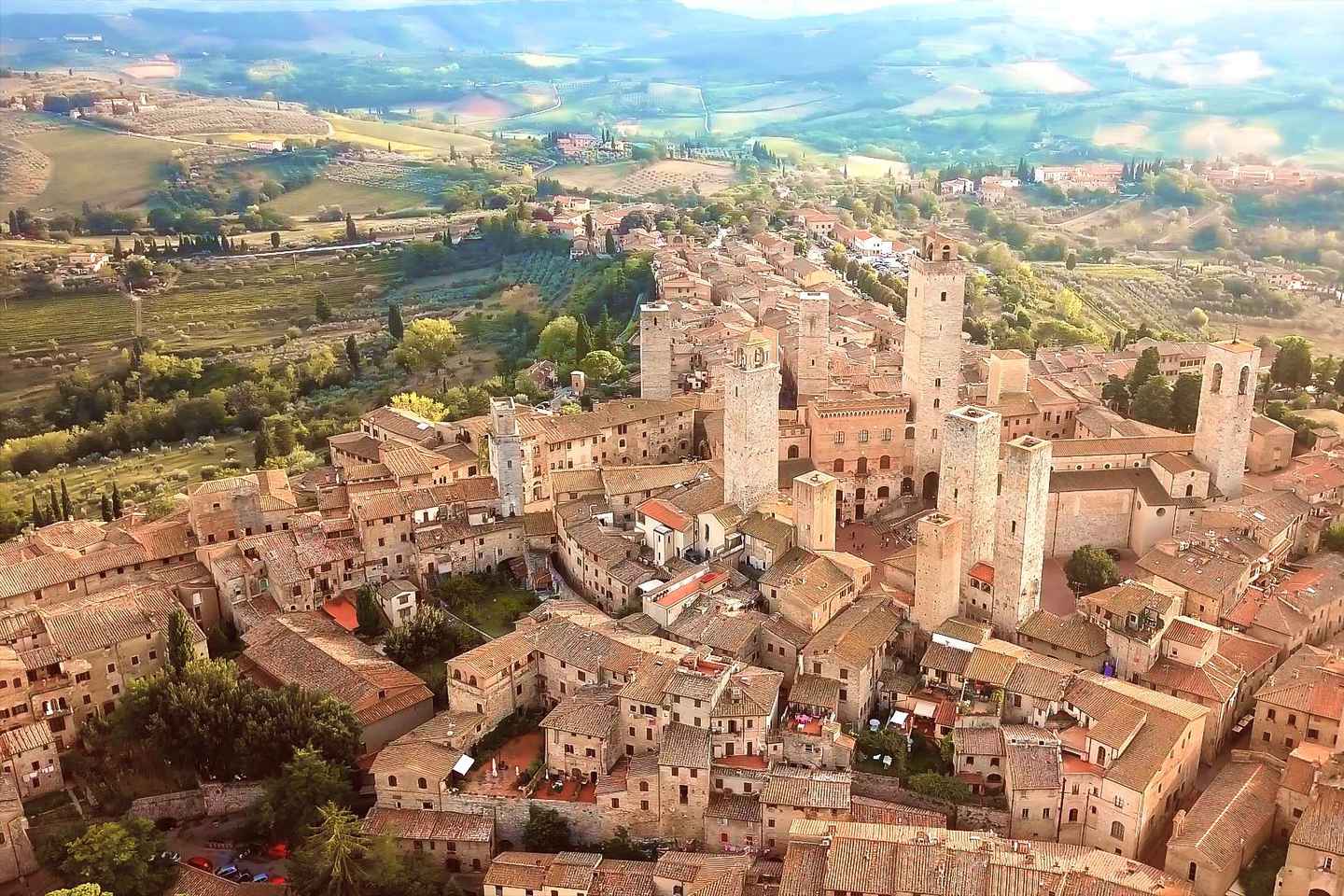 Commencez votre aventure à San Gimignano, célèbre pour son horizon médiéval préservé et ses trésors artistiques. Vous avez deux heures pour explorer à votre rythme les rues charmantes et l'histoire vibrante de cette ville perchée sur une colline.