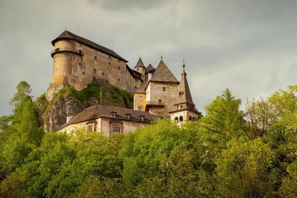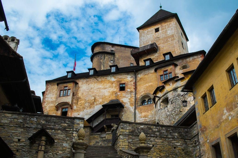 Traversez des paysages pittoresques pour atteindre le magnifique Château d'Orava, perché au-dessus de la rivière Orava. Passez 1 heure et 15 minutes à explorer ses sections historiques, dont les châteaux Inférieur, Moyen et Supérieur, chacun offrant des expositions uniques sur l'histoire, la nature et l'ethnographie.