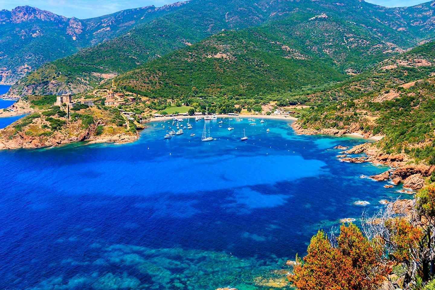 At midday, stop at the charming fishing village of Girolata, built around an 18th-century fort and only accessible by sea. Enjoy two hours of free time for lunch, either at a local restaurant reserved by your skipper or with your own picnic on the beach, where wild cows often roam.