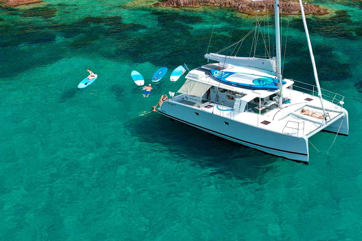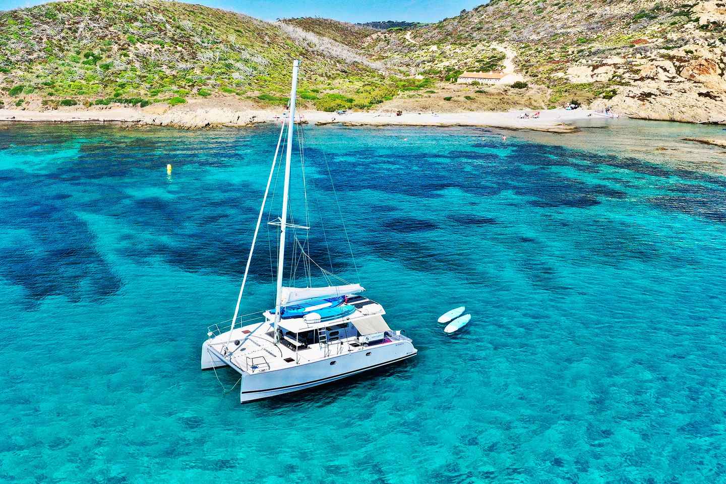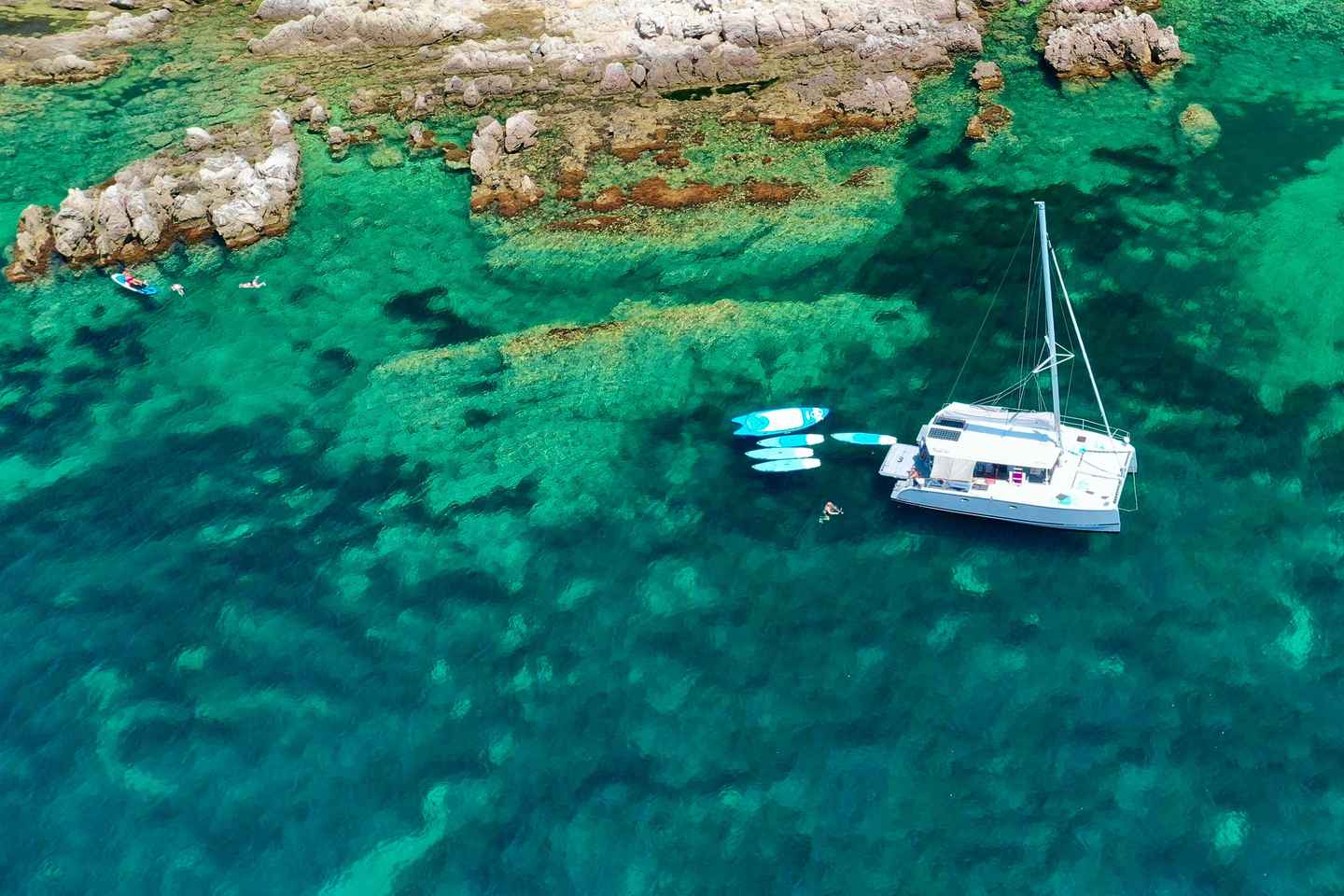 Dive into crystal-clear waters during one or two swim stops in the morning, or typically two in the afternoon. Snorkeling gear and stand-up paddleboards are provided, allowing you to explore the magical Calanques at your own pace. For thrill-seekers, a diving board on the catamaran’s roof offers an exhilarating leap into the Mediterranean.