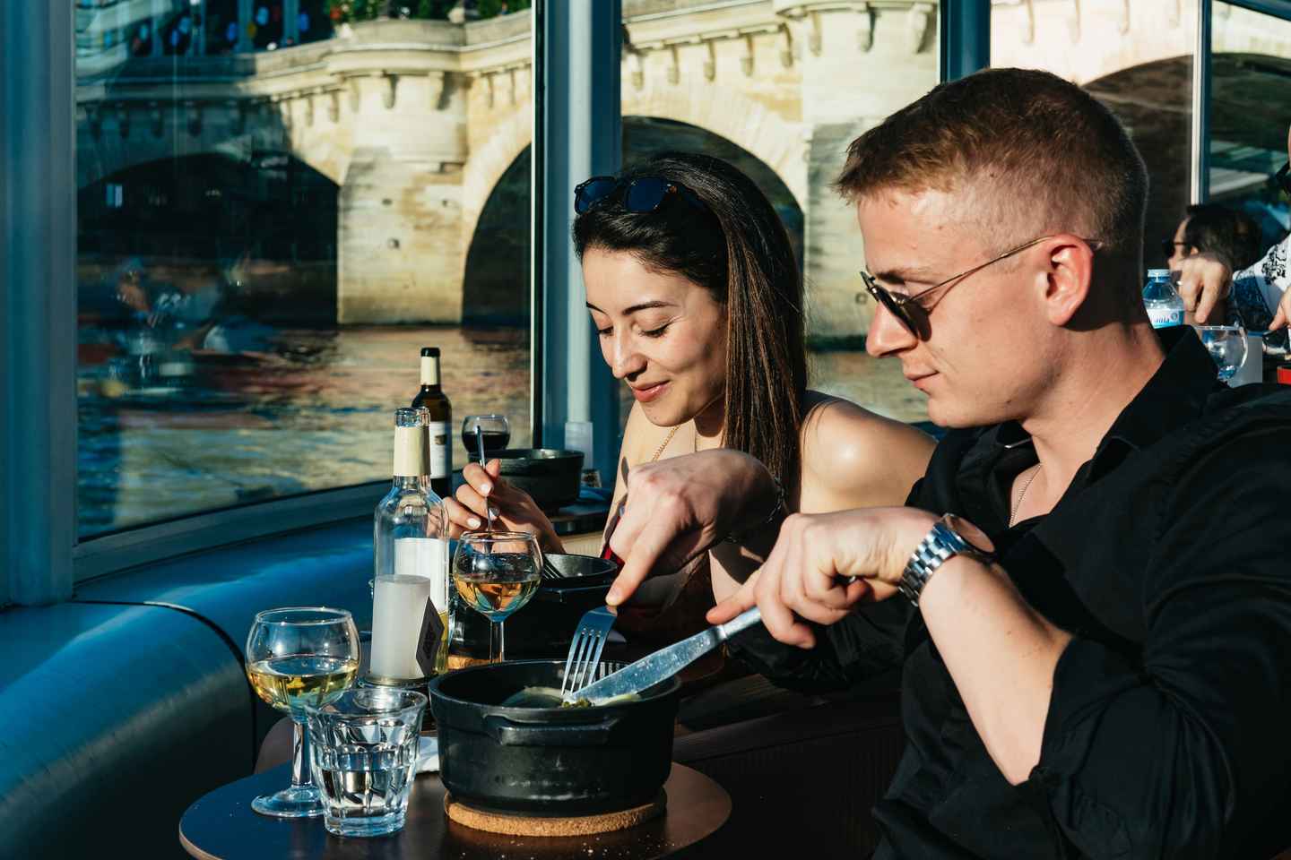 Enjoy a delicious dinner featuring classic French cuisine, expertly prepared in cocotte style to highlight authentic flavors. Settle into comfortable club-style armchairs facing the river, ensuring you have uninterrupted views of Paris’s most famous sights as you dine.