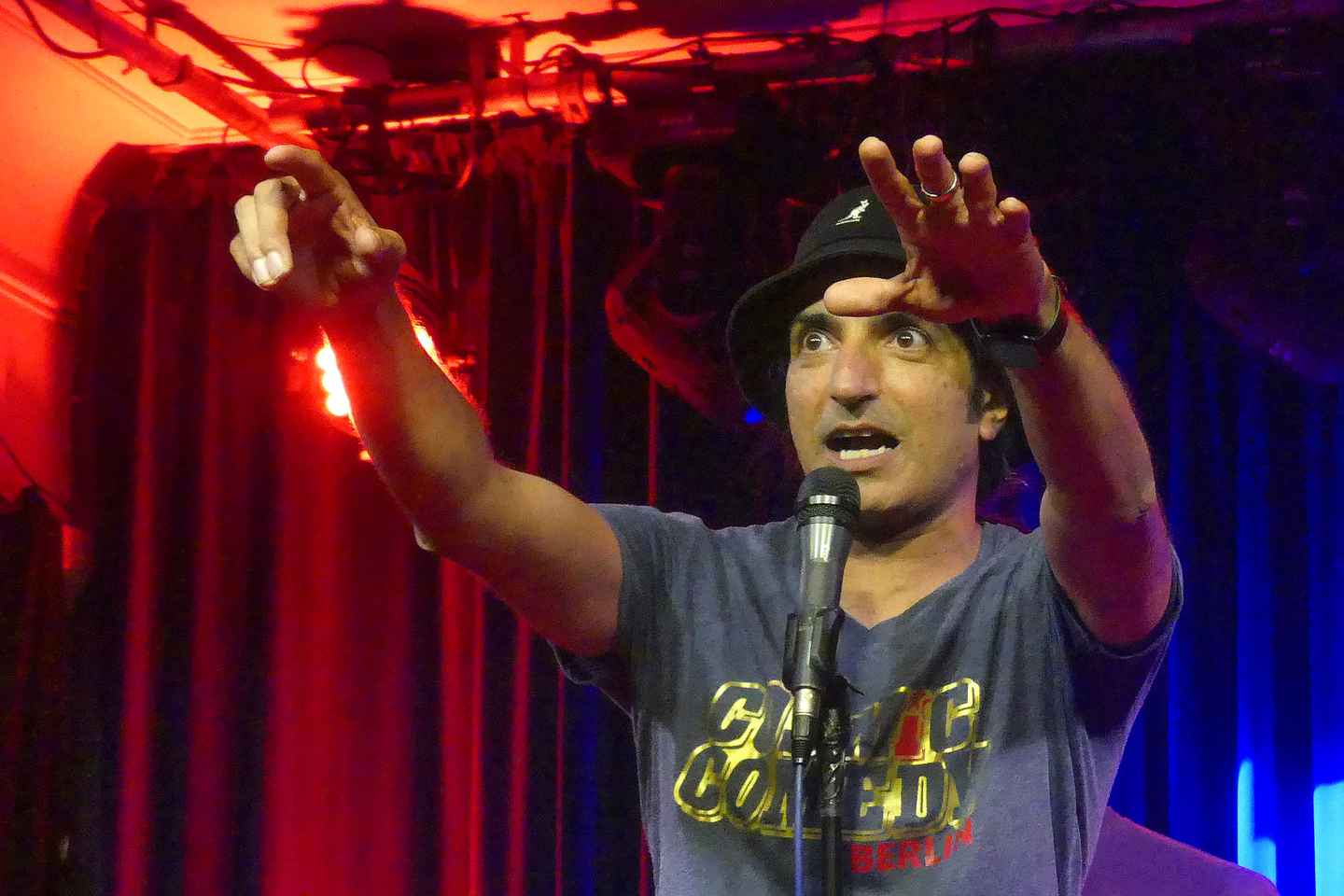 Experience a lively evening of English stand-up comedy in the heart of Berlin at the renowned Kookaburra Comedy Club. This event brings together a diverse lineup of local and international comedians, all expertly hosted by Dharmander Singh and Neil Numb, ensuring plenty of laughs in a welcoming atmosphere.