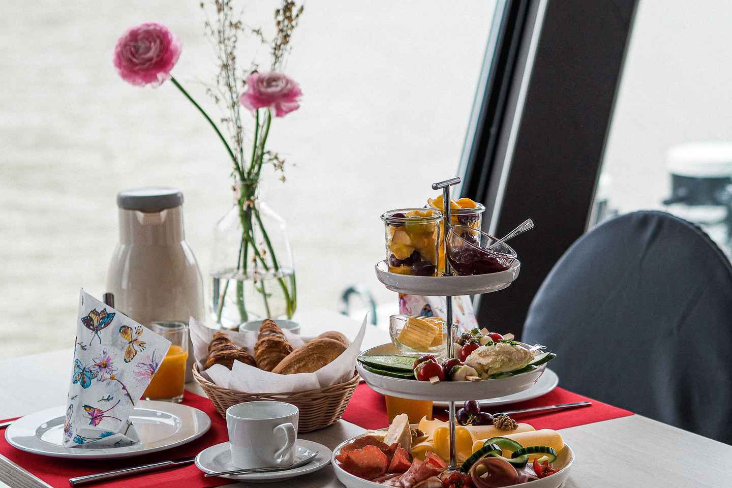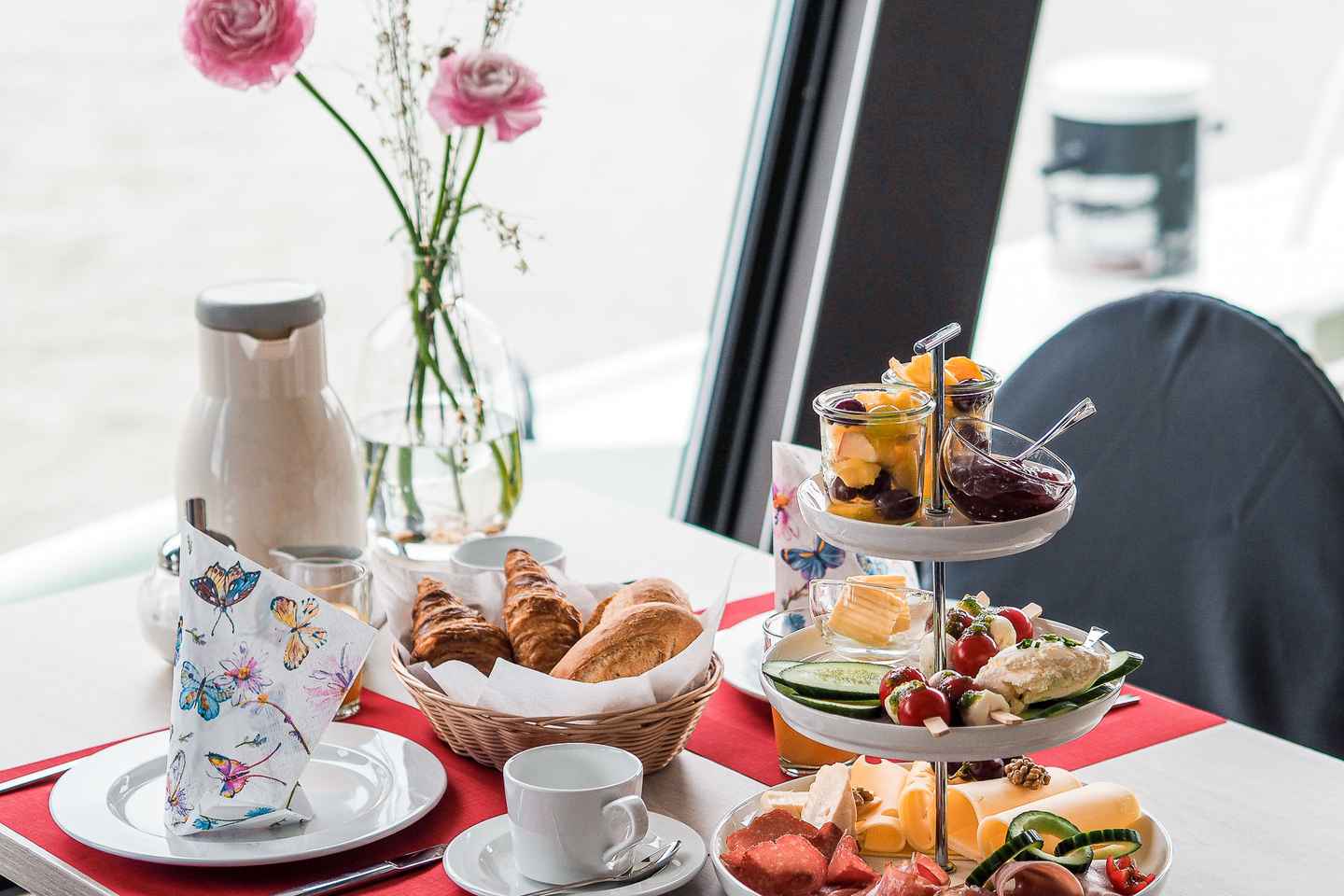 Step aboard at the main pier and be welcomed with a sparkling champagne reception. Settle into the cozy atmosphere as you sip freshly brewed coffee and indulge in a generous breakfast buffet, all while the morning sun illuminates the beautiful landscape outside.