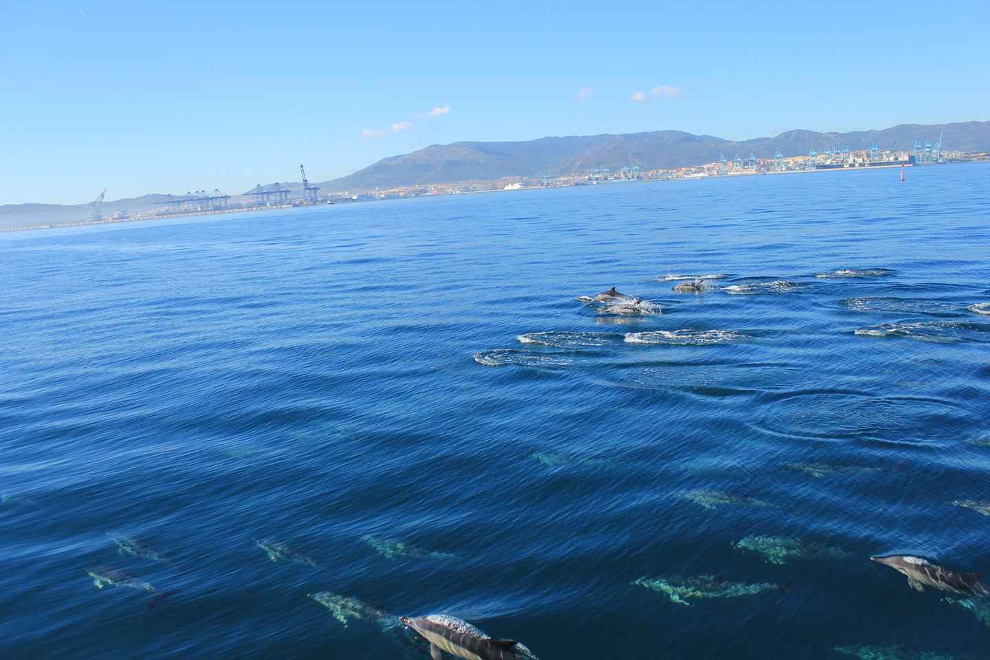 Set sail on an unforgettable dolphin watching cruise in the Bay of Gibraltar, where wild dolphins thrive in their natural habitat. This 1.5-hour adventure invites you to witness these playful creatures up close as they leap, swim, and surf alongside the boat, offering a magical experience for all ages.