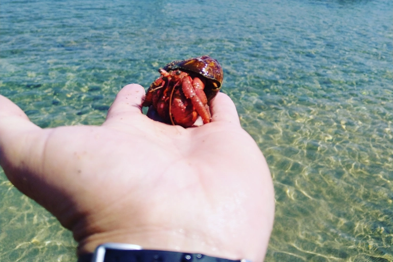 The journey continues to Lazaretta Island, where a tranquil beach awaits. Unwind with a picnic on the soft sands, swim in crystal-clear waters, or relax on the boat while gazing through the glass-bottom panels at the vibrant underwater world teeming below.
